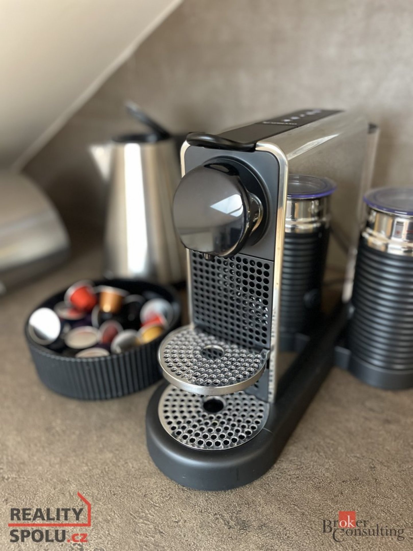 Co se týče vybavení, na nic nezapomněli. Kuchyňská linka se spotřebiči, včetně sklokeramické varné desky, elektrické trouby, myčky, stylového odsavače par, lednice s mrazákem a kávovaru Nespresso, vás bude inspirovat k vaření. K dispozici je také pračka a sušička, rolety pro váš klidný spánek, video telefon pro vaši bezpečnost a mnoho dalšího.