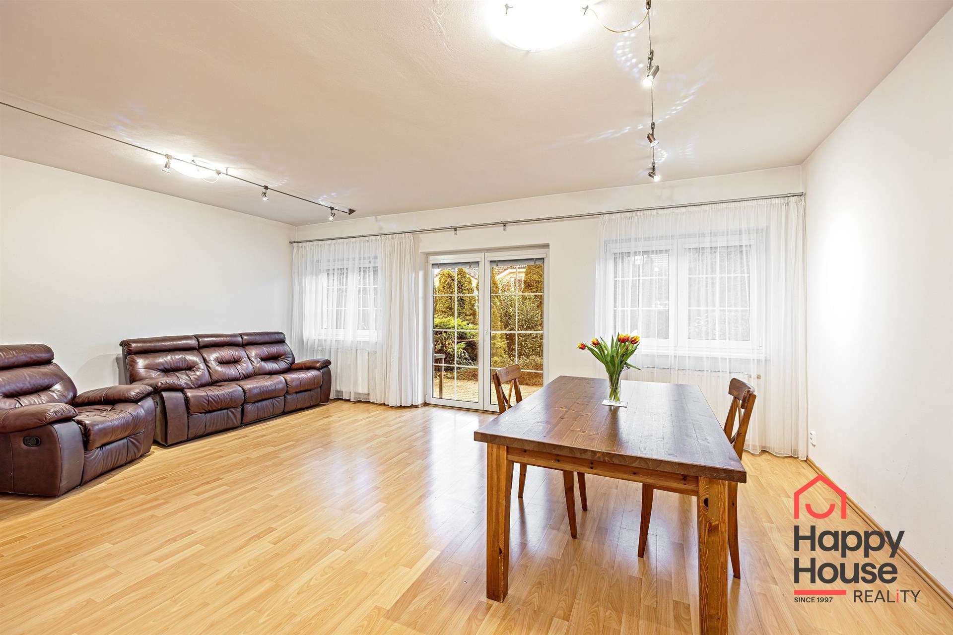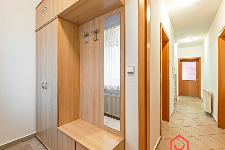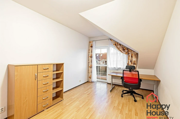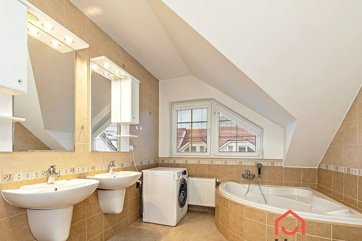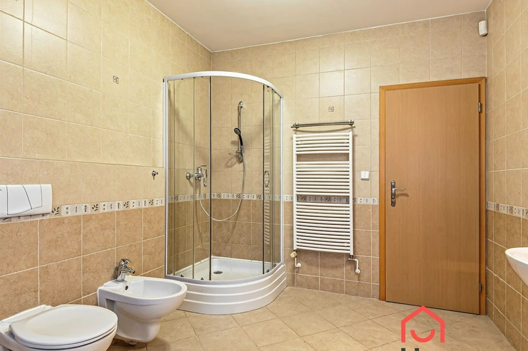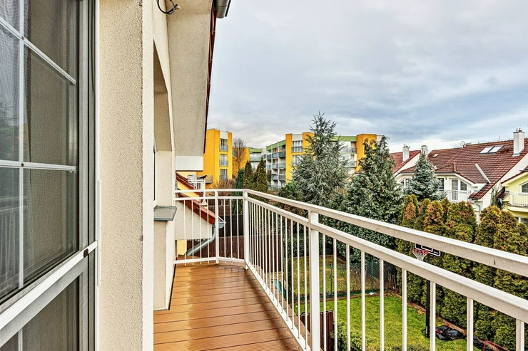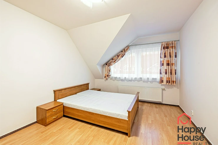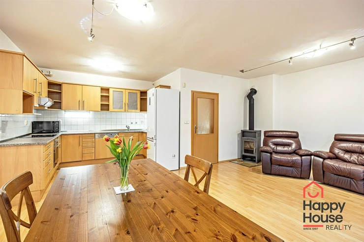 We offer for rent a very nice, terraced, three-story four-bedroom family house with a balcony, terrace, garden, and garage in Prague 4 Libuš. This house is rented fully furnished and equipped with furniture. In the living room, there is a fireplace stove and access to the terrace and garden. The kitchen area includes a refrigerator with freezer and a corner kitchen unit with built-in appliances - induction hob, electric oven, extractor hood, and dishwasher. In the spacious bathroom, there is a corner bathtub, shower, toilet, bidet, and heated towel rail, and in the other bathroom, there is a shower and toilet. In the utility room there is a gas boiler and washing machine. Laminate floating floors and tiles. Telephone connection and internet available. The house has a basement, a garden that can be used, as well as parking spaces in the garage.