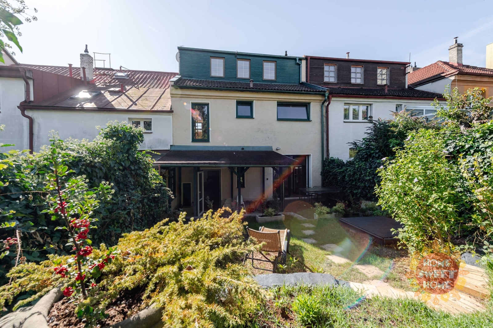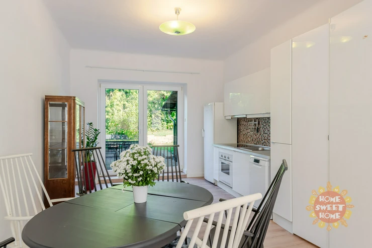 We are offering for rent a bright, newly painted and partly furnished terraced house with a garden, located in a quiet area on Sedlecká Street, Prague 8 – Kobylisy.
