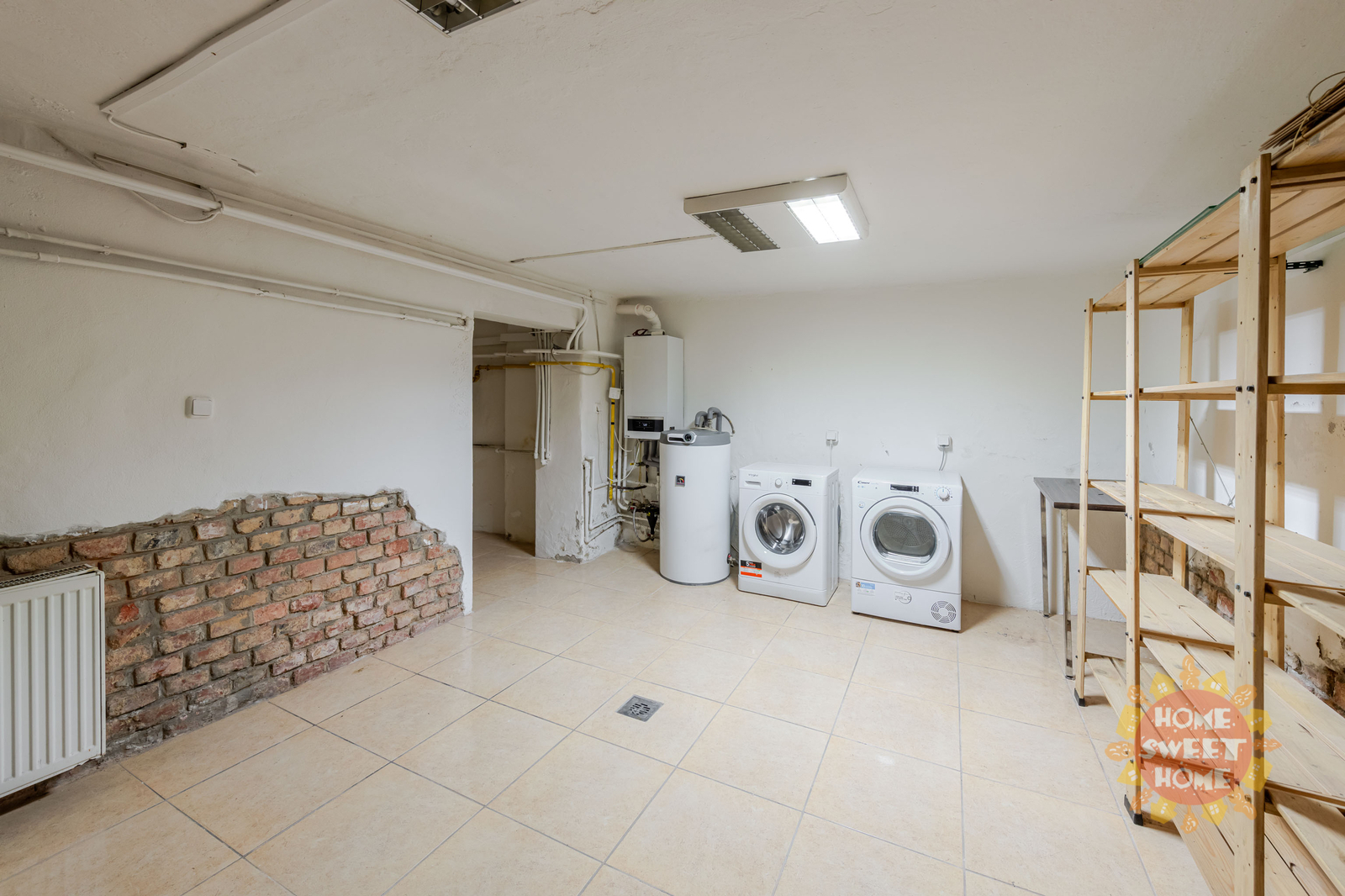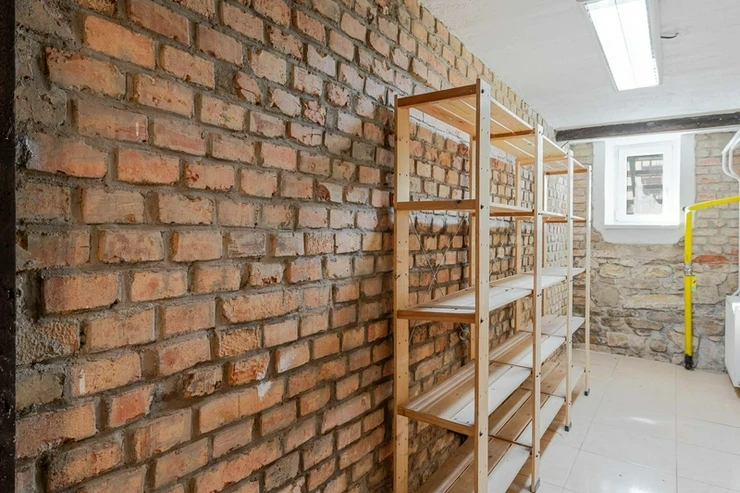 Basement: technical room with washing machine, storage space for fruit and vegetables, with the possibility of use as a workshop or wine cellar.