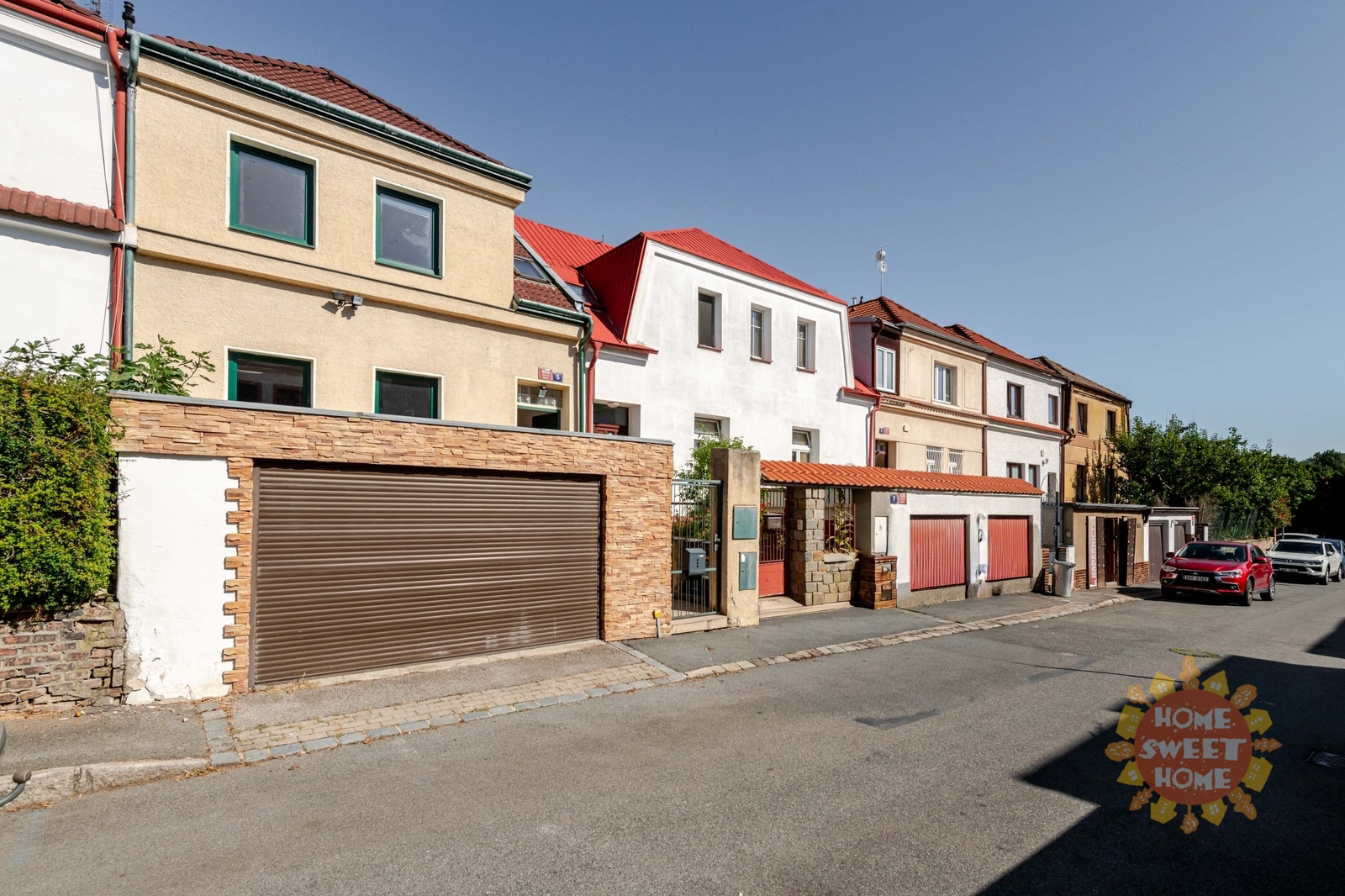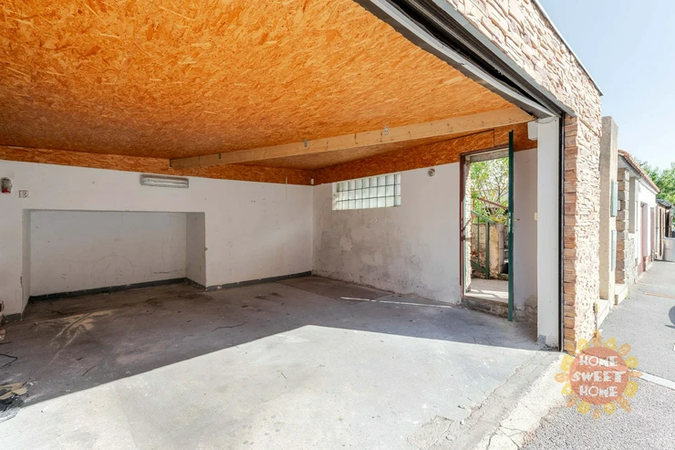 The house includes a spacious garage suitable for two smaller cars or one larger vehicle plus a motorcycle or trailer.