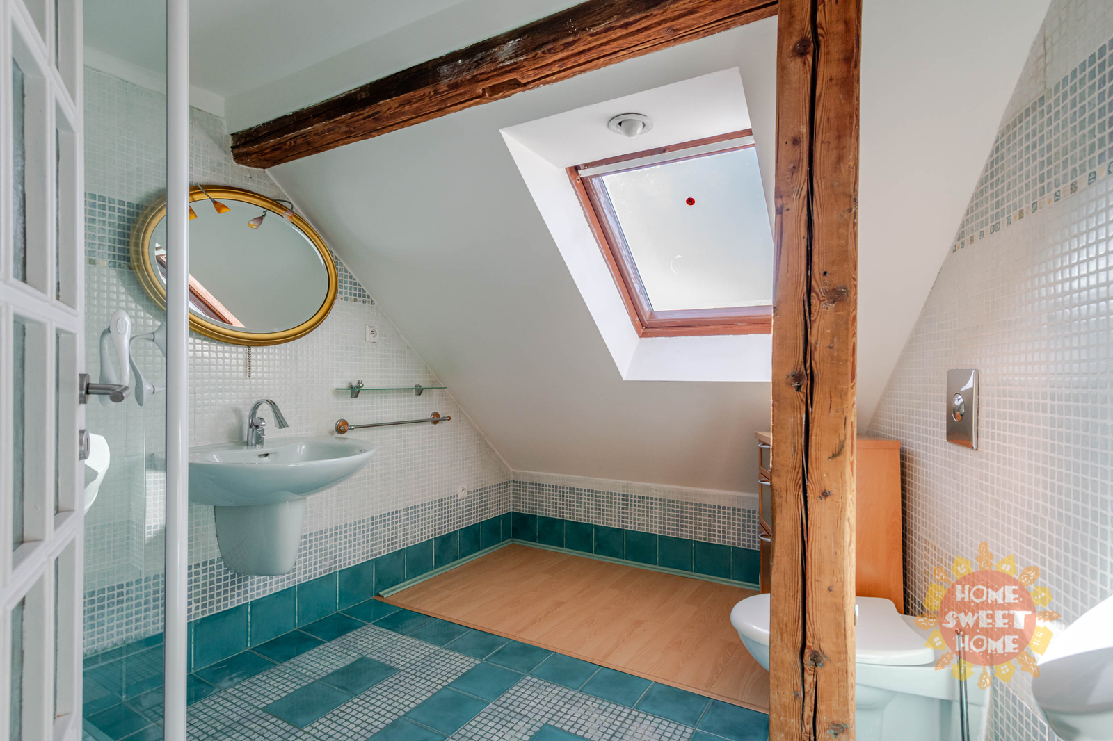 2nd floor: living room and second bathroom with shower and toilet.
