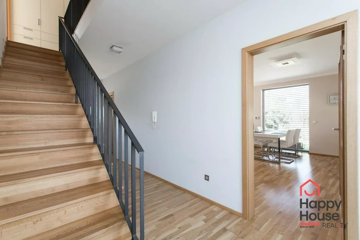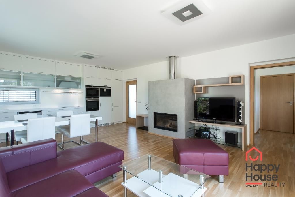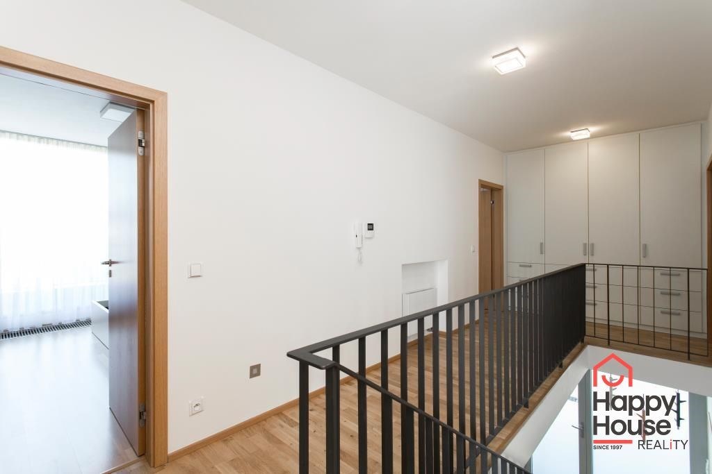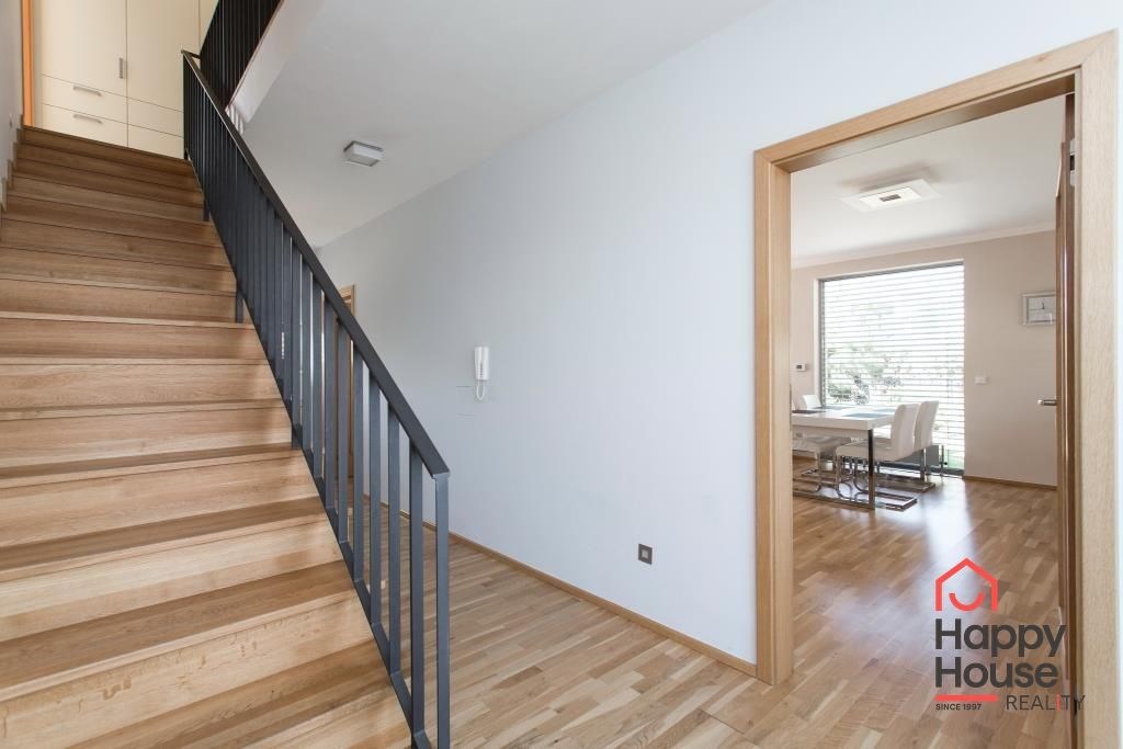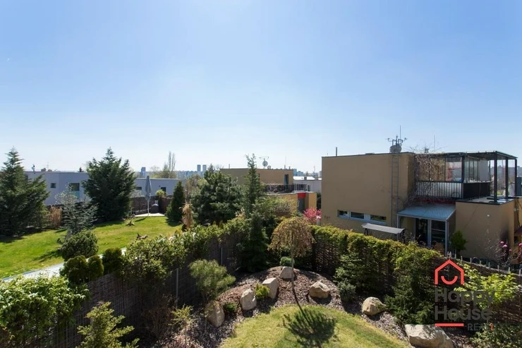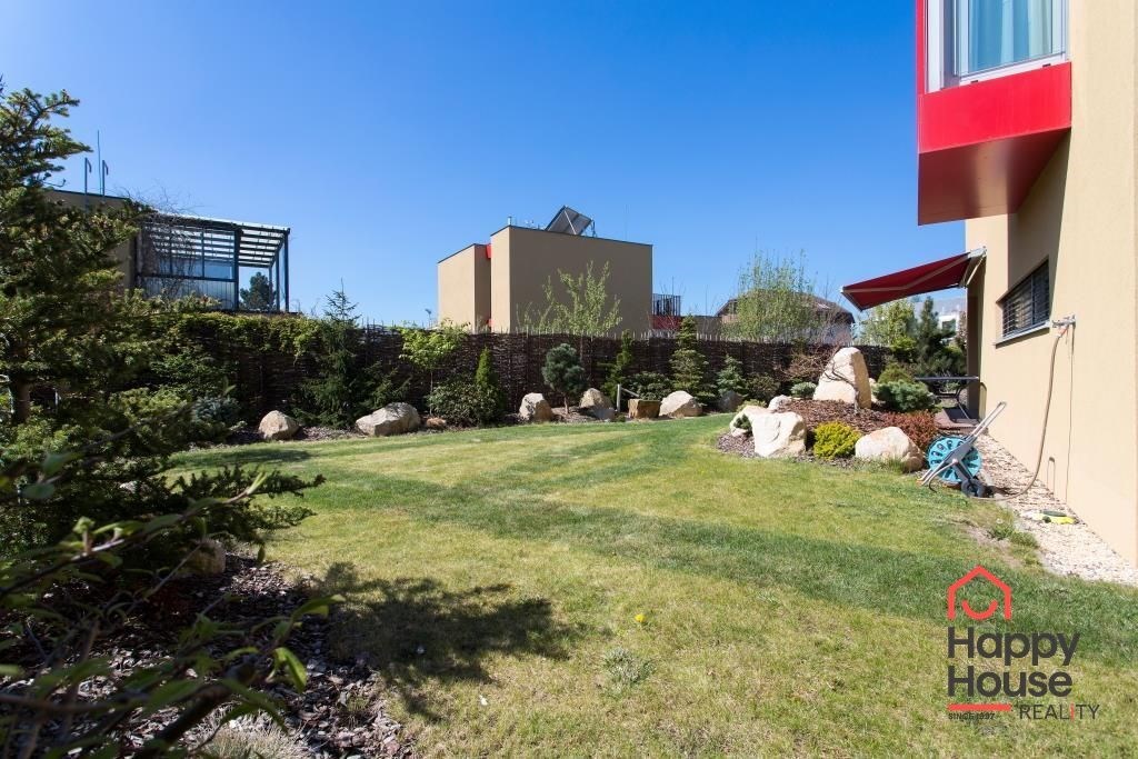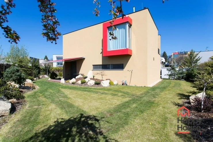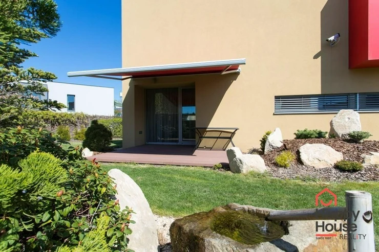 Exklusivně nabízíme k pronájmu samostatný rodinný dům 4+kk s japonskou zahradou v oblíbené oblasti Prahy 5 ve Stodůlkách. Dům z roku 2011 je plně zařízený a nabízí v přízemí vstupní halu s chodbou a schodištěm, obývací pokoj s moderní kuchyňskou linkou, která je plně vybavena všemi spotřebiči, krbem a vstupem na terasu a zahradu, kouplenu (toaleta, 2 umyvadla, pračka). V patře 3 ložnice (jedna s balkónem, jedna s prosklenou nikou) a koupelnu (vana, sprchový kout, toaleta). Na podlahách dřevěné parkety a dlažba. Vytápěno plynovým kotlem. Dále k dispozici vestavěné úložné prostory, venkovní el rolety, el markýza nad terasou, alarm systém, termostat, možné připojení na internet, telefon, satelit a kabel TV. K domu náleží garážové stání s přímým vstupem do domu.