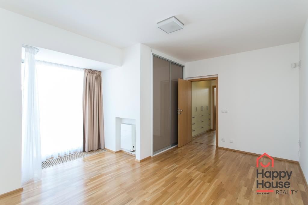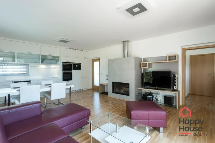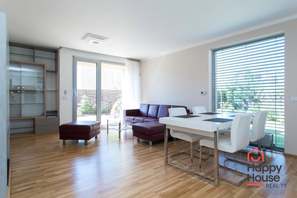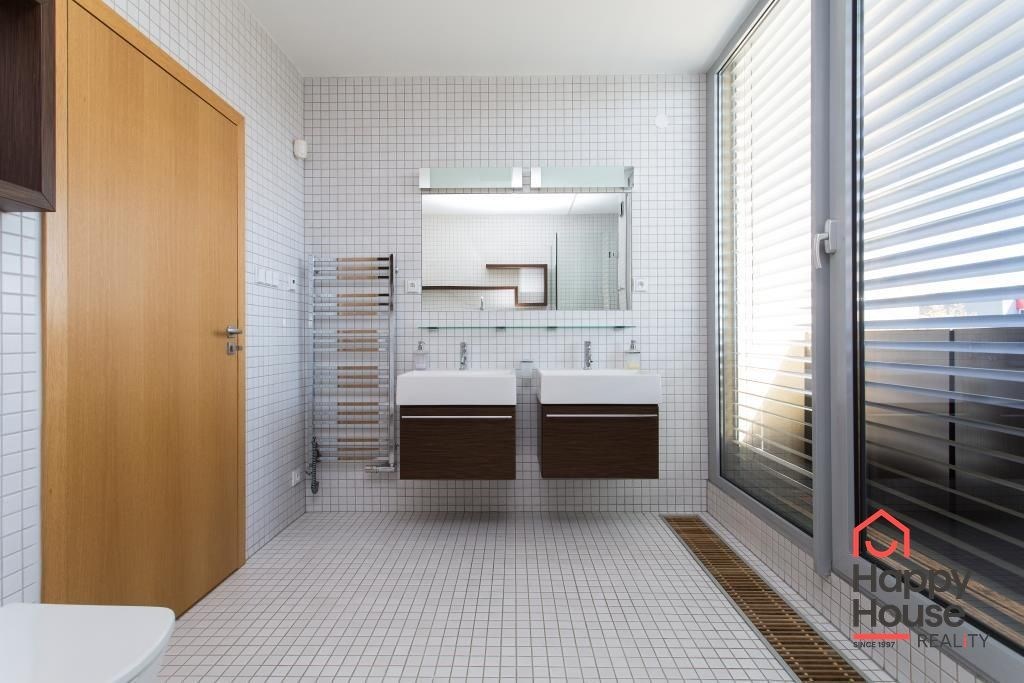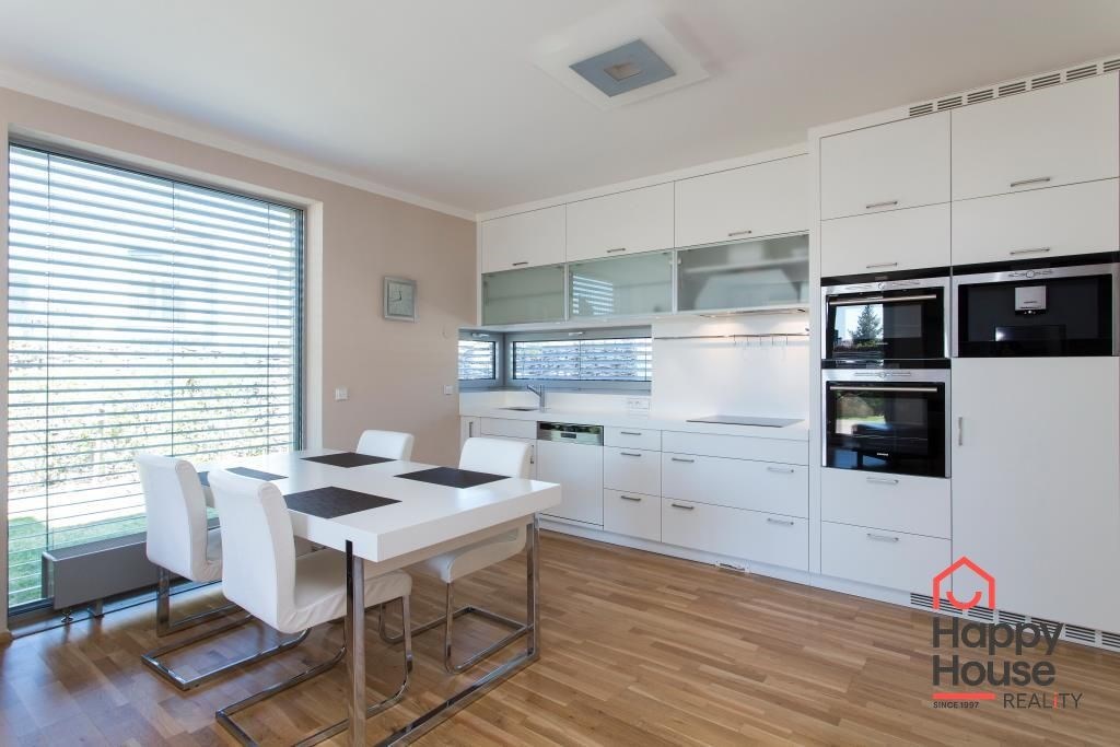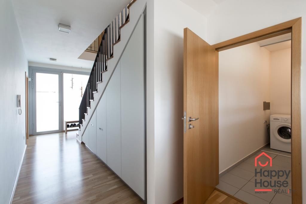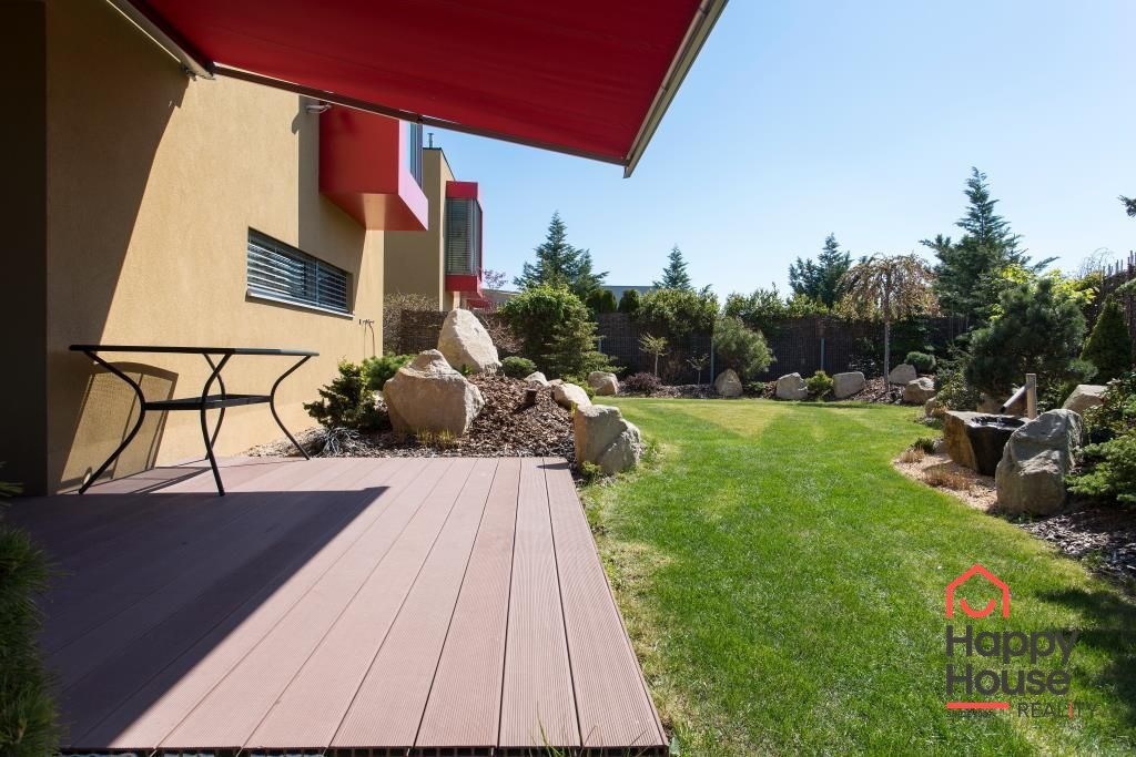 Exklusivně nabízíme k pronájmu samostatný rodinný dům 4+kk s japonskou zahradou v oblíbené oblasti Prahy 5 ve Stodůlkách. Dům z roku 2011 je plně zařízený a nabízí v přízemí vstupní halu s chodbou a schodištěm, obývací pokoj s moderní kuchyňskou linkou, která je plně vybavena všemi spotřebiči, krbem a vstupem na terasu a zahradu, kouplenu (toaleta, 2 umyvadla, pračka). V patře 3 ložnice (jedna s balkónem, jedna s prosklenou nikou) a koupelnu (vana, sprchový kout, toaleta). Na podlahách dřevěné parkety a dlažba. Vytápěno plynovým kotlem. Dále k dispozici vestavěné úložné prostory, venkovní el rolety, el markýza nad terasou, alarm systém, termostat, možné připojení na internet, telefon, satelit a kabel TV. K domu náleží garážové stání s přímým vstupem do domu.
