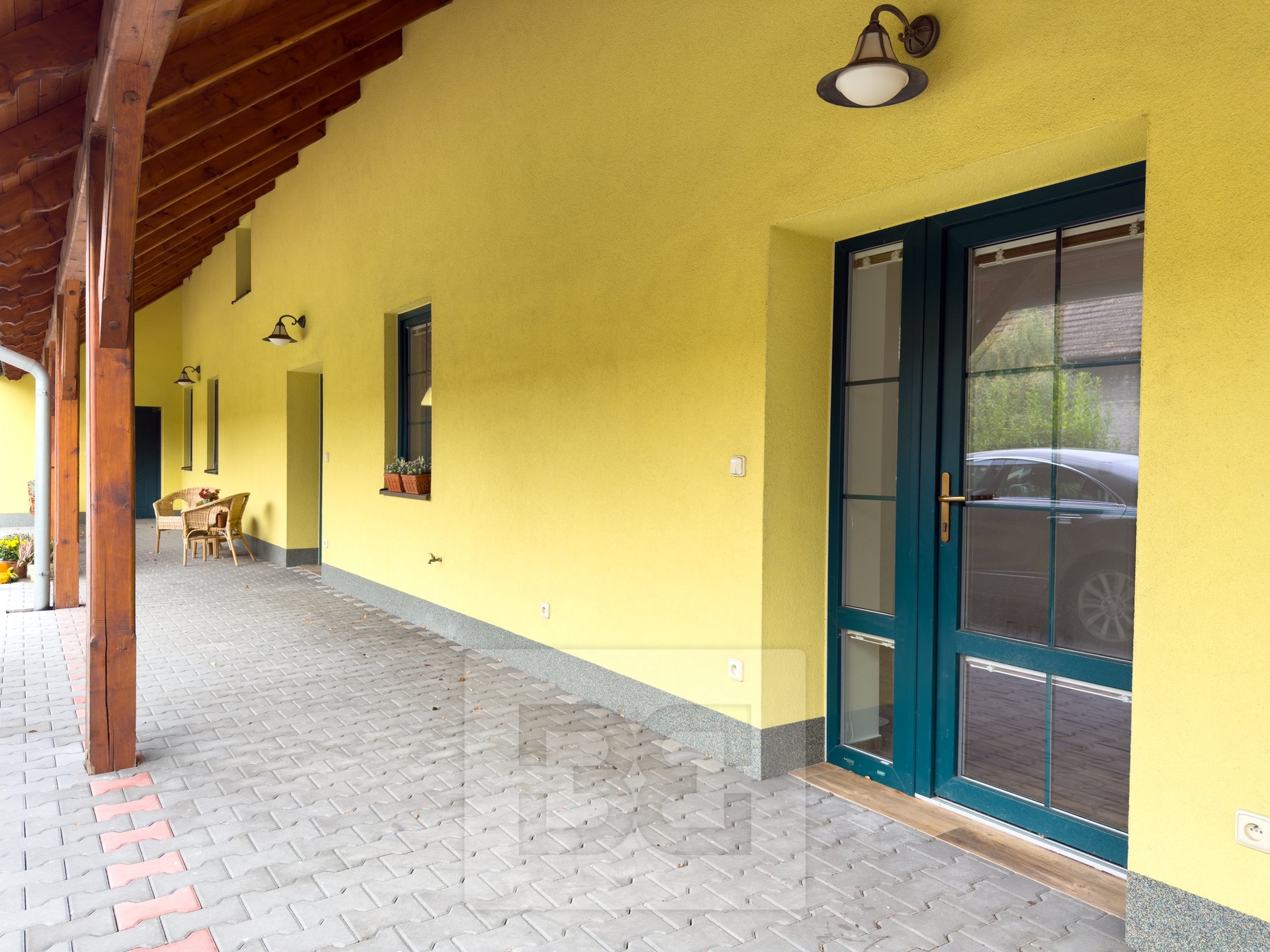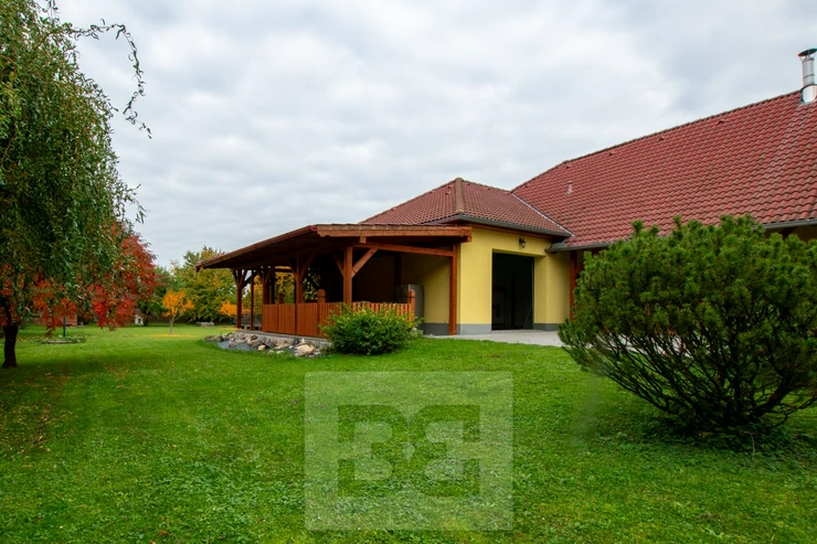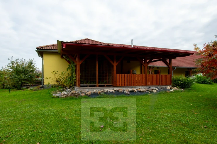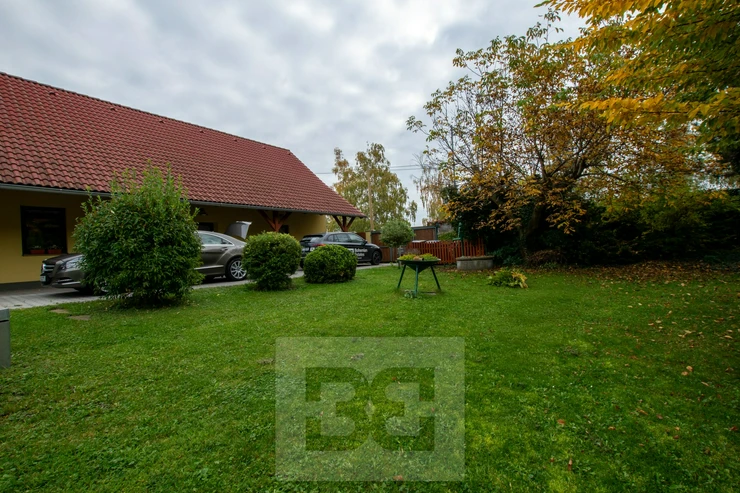 A major benefit is the large garden with an area of approximately 1,700 m², offering a wide range of uses. The garden includes a spacious covered terrace, a private well, a garden shed, a smokehouse, a greenhouse, and numerous fruit trees.