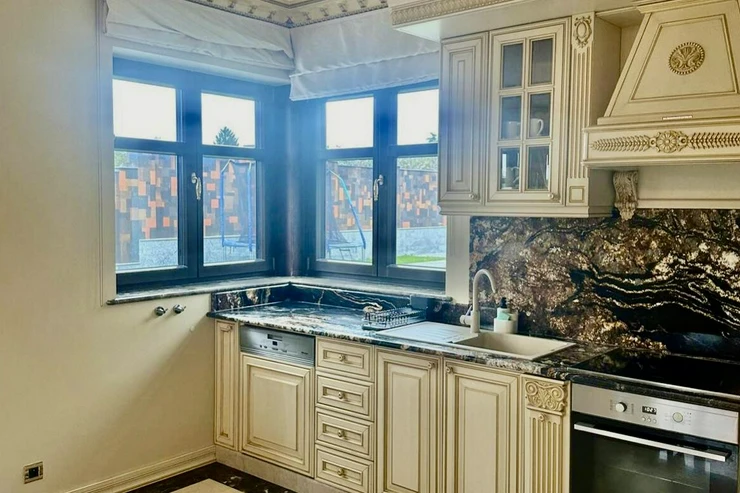 Luxusní rodinný dům v klasickém stylu s mramorem a křišťálovými lustry