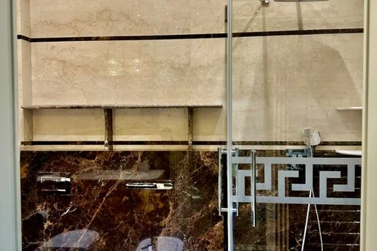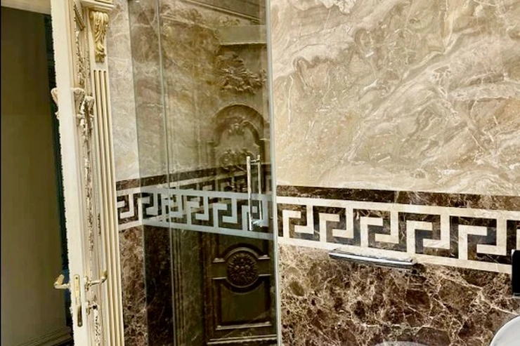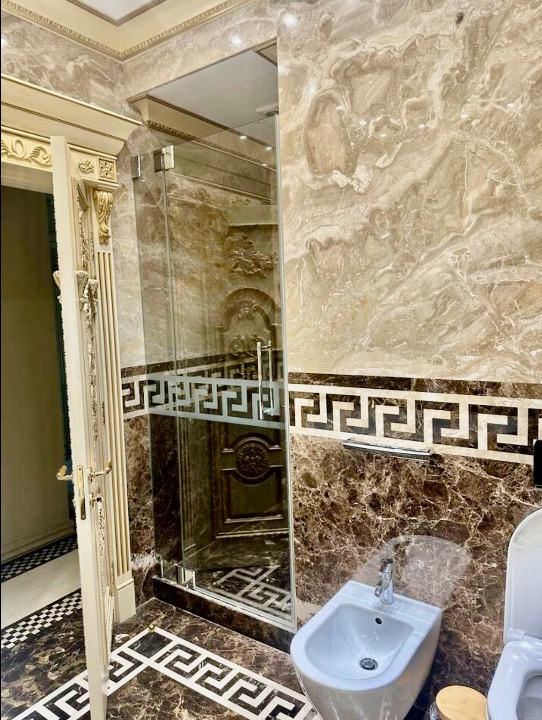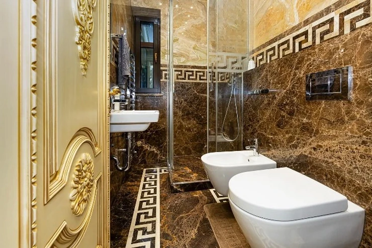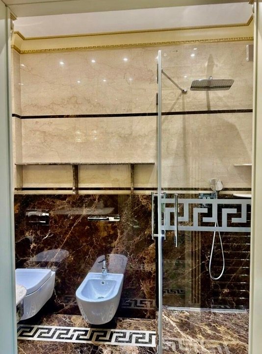 V obou koupelnách je podlahové vytápění, obklady i podlahy jsou z luxusního mramoru.