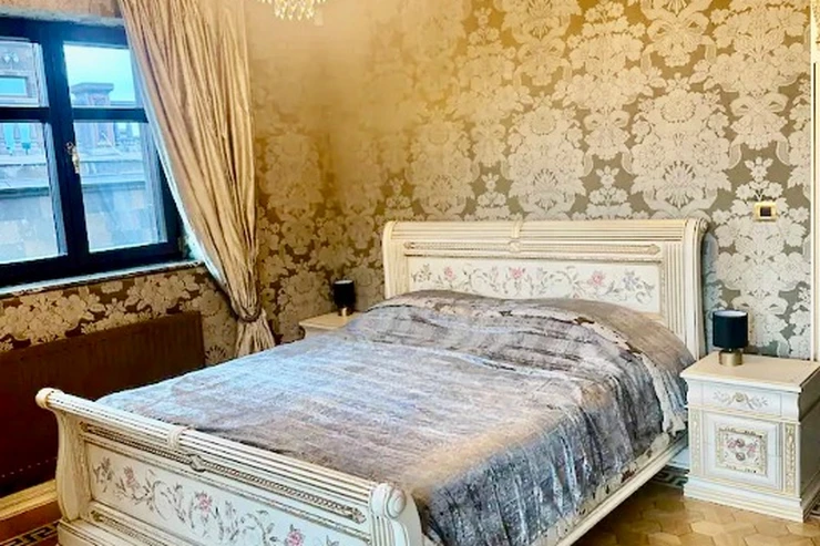 Interiér vyniká důrazem na detail přírodní mramor, vzorované parketové podlahy z ušlechtilých dřevin, sanita Villeroy and Boch, spotřebiče Miele a nádherné křišťálové lustry s bronzovými prvky společně vytvářejí atmosféru klasické elegance. Stylová nástěnná svítidla (bra) doplňují interiér měkkým, teplým světlem. Dispozice: