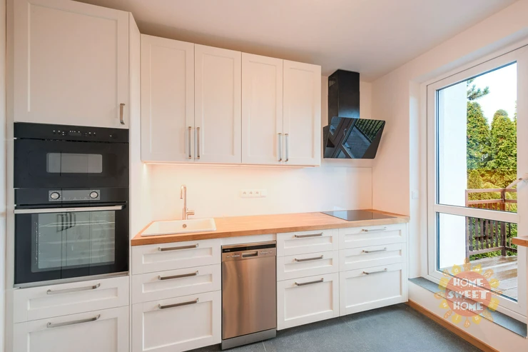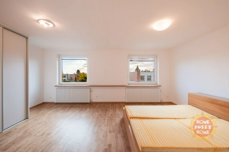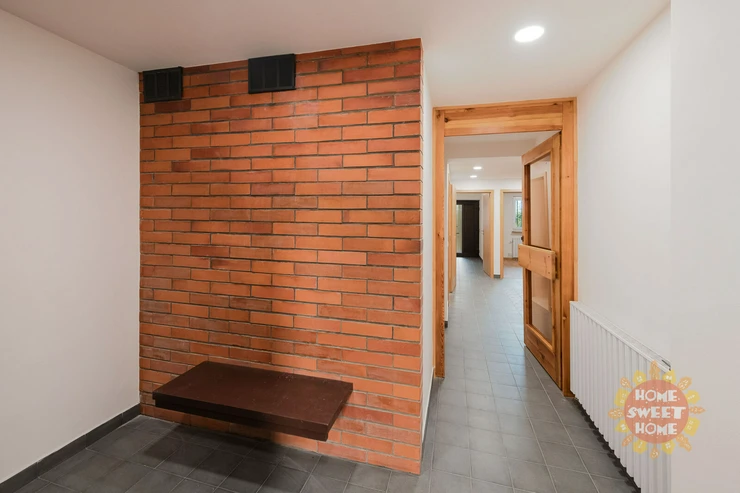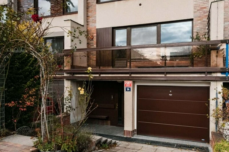 We offer for rent a beautiful terraced house after internal reconstruction. The house is insulated except for the front facade, new roof and garage gate It is located in a quiet and safe area of Dejvice in Prague. This spacious family house with a layout of 7+1 is ideal for families with children looking for comfortable and pleasant living close to schools, parks, and other attractions for kids. The house is finished and will feature high-quality wooden floating floors, luxury bathrooms including a freestanding bathtub on each floor, exposed brick walls in the interior, and multi-split air conditioning.