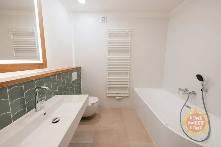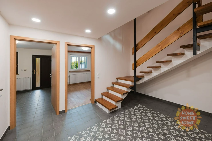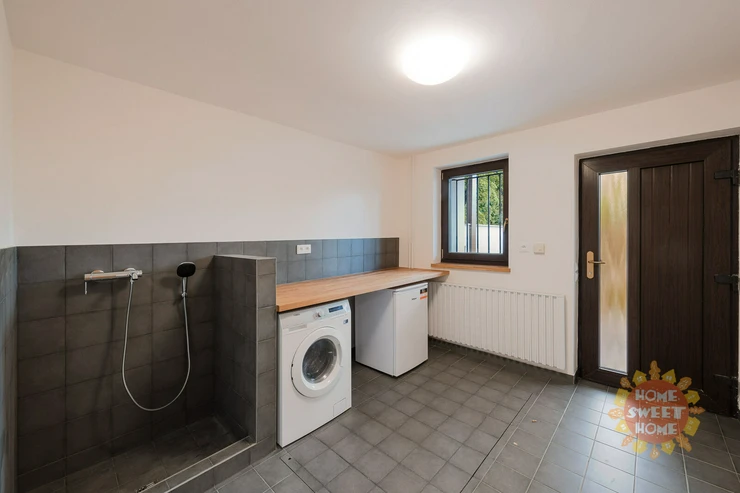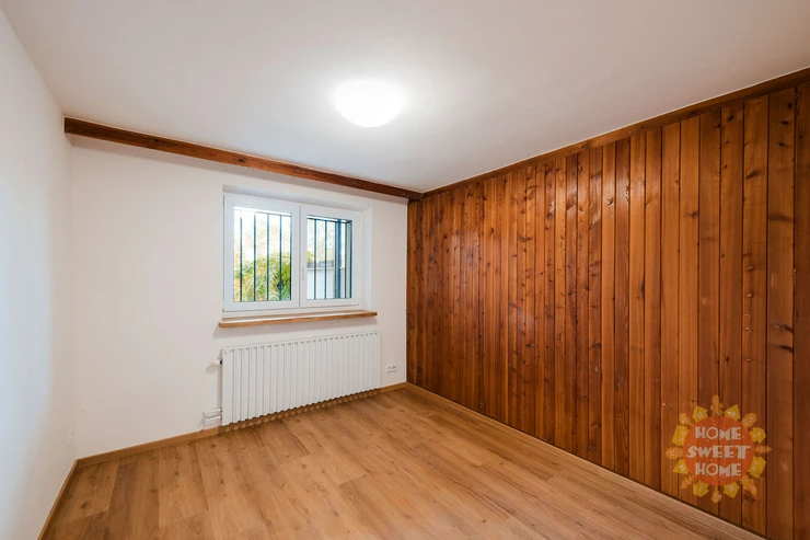 The interior of the house is designed with an emphasis on a family atmosphere. It has four separate bedrooms that provide privacy for both children and parents. Additionally, there are three bathrooms with toilets in the house, which makes daily life easier for a large family. Heating is provided by an electric boiler and radiators, ensuring the entire living space is pleasantly warm even in colder months.