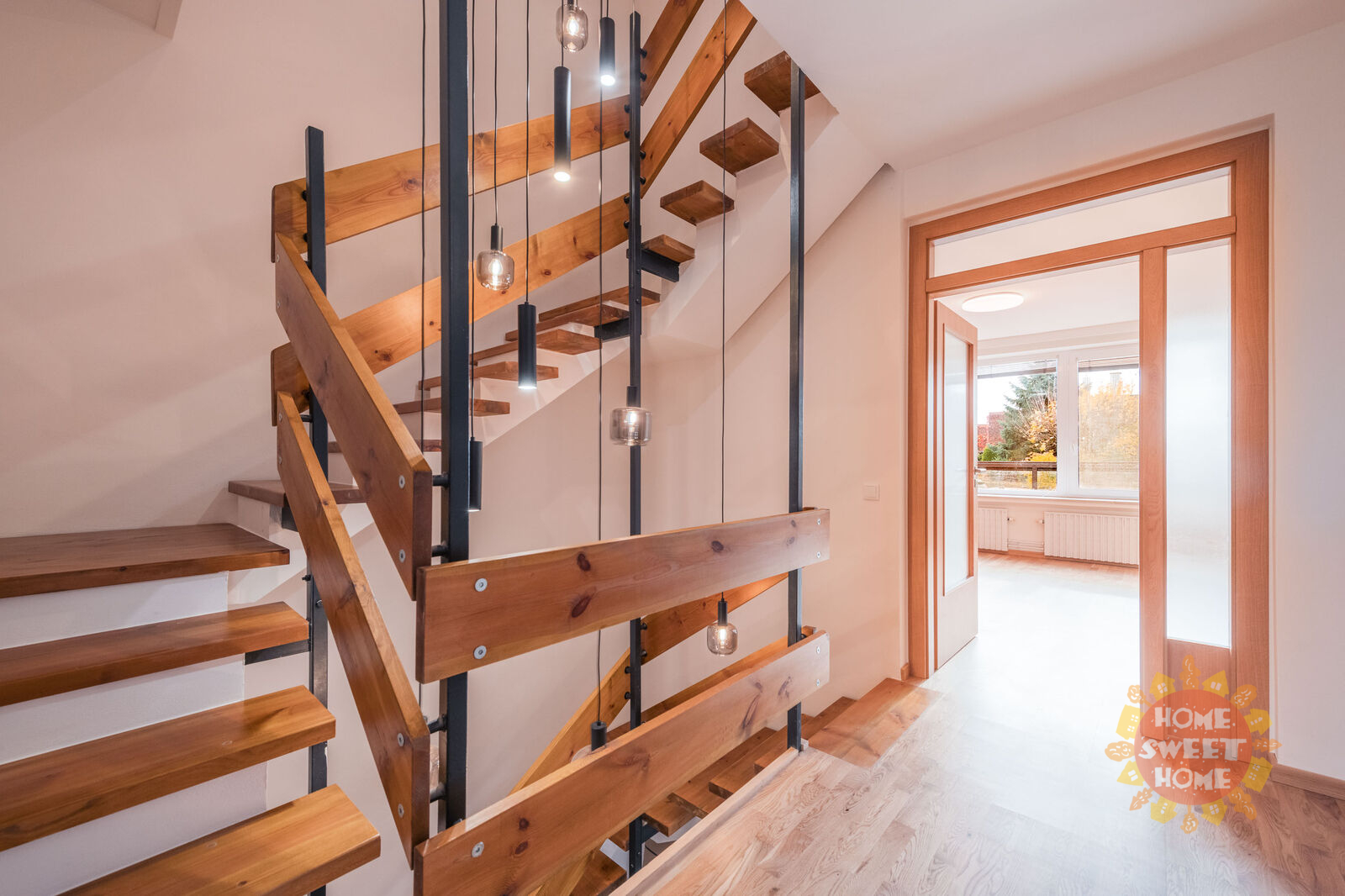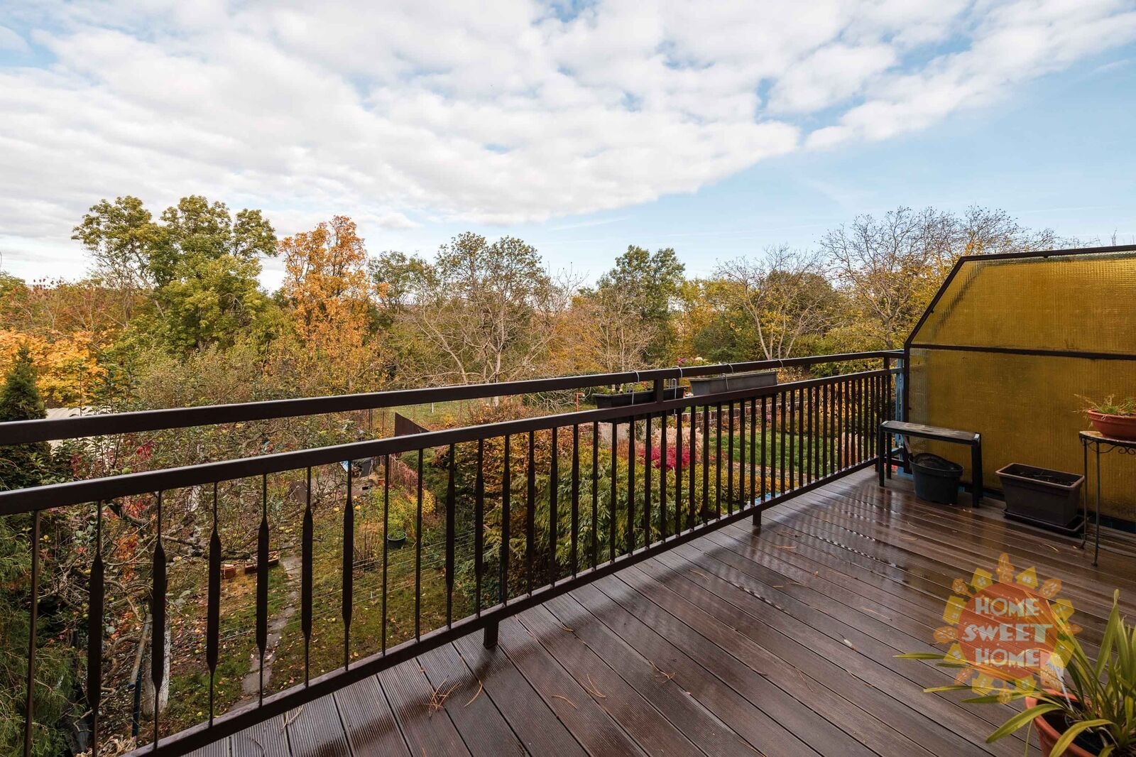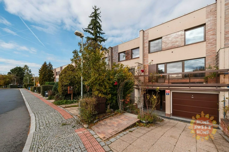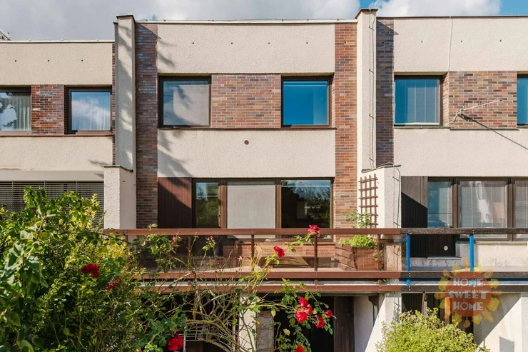 The house has three floors, two balconies, and a terrace with access to the garden, as well as a basement that can be used as a playroom or gym. The plot behind the house contains a tranquil garden measuring 191 m², which offers an ideal space for children's play and relaxation. The garden, which includes a pool, is a perfect place for family gatherings and picnics while the children can enjoy outdoor activities.