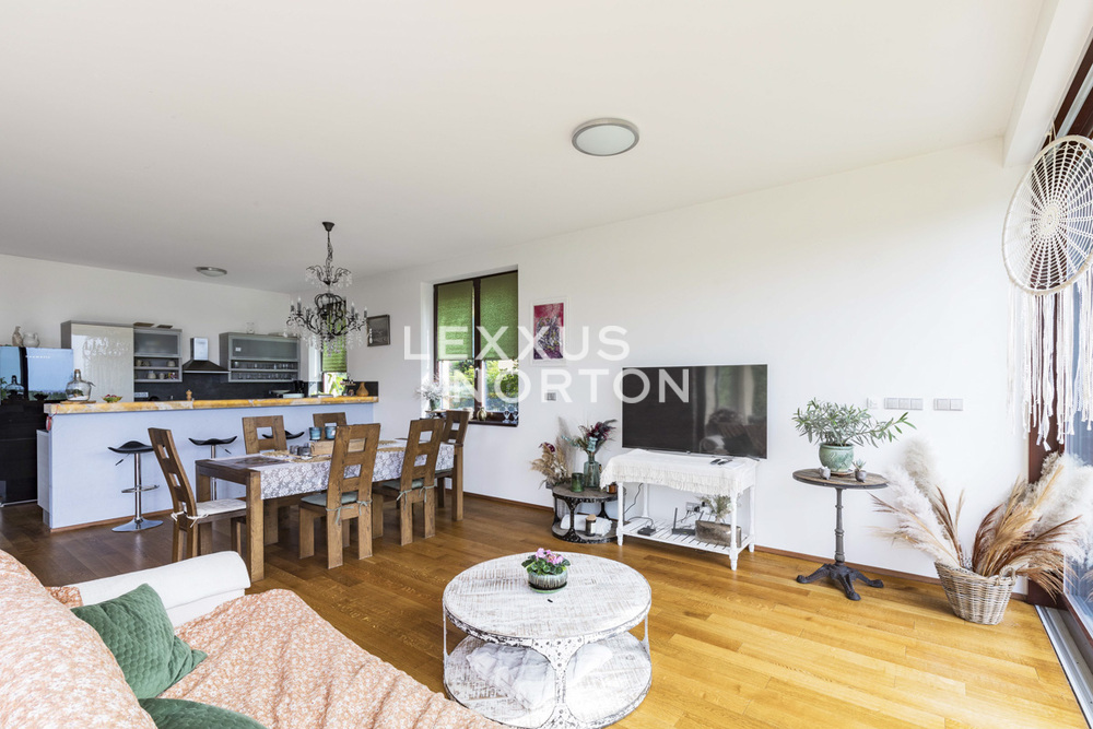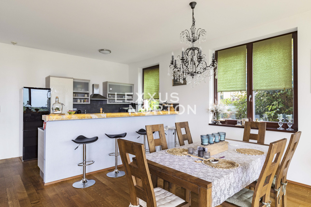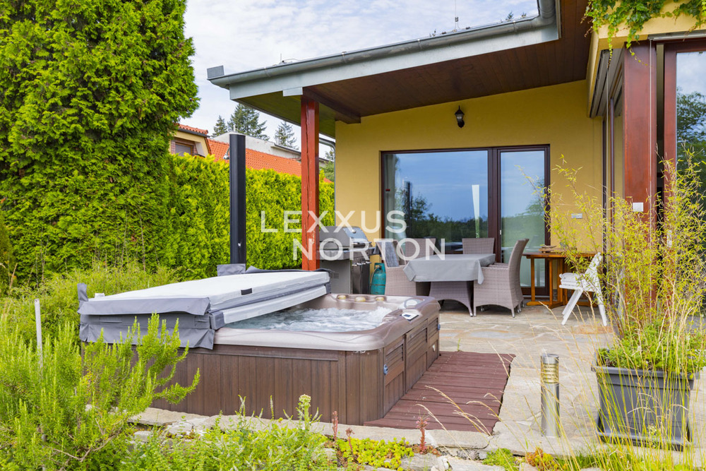 An unique opportunity for families with children to live in a modernly furnished, two-bedroom family house for rent (190 sqm) with a well-kept garden, a terrace, a sauna and a jacuzzi. The family house is situated in a pleasant location in Lysolaje. All civic amenities, several natural parks and Vltava, as well as good links to international schools.The living area of 190 sqm provides comfortable living in this single-story, modernly furnished 2-bedroom family house for rent. The interior consists of a spacious entrance hall, a living room with large windows, a bar seating area, and an adjoining kitchen and dining area. The living room opens onto the terrace and garden. There are also two bedrooms, one of which has direct access to the terrace, two bathrooms, and a storage room.The house includes a fully equipped kitchenette with a stove, oven, refrigerator, freezer, dishwasher, and microwave. There are two bathrooms - one with a bathtub and toilet, and the other with a sauna and shower. The amenities also include built-in wardrobes and a washing machine. The house has a garage, parking space on the property, a garden with a beautiful view of the valley, and a terrace with outdoor seating, a hot tub, and an outdoor shower.One of the most sought-after residential areas in Prague - Lysolaje, characterized by a peaceful environment, villa development, and a pleasant genius loci. Hrebenova Street offers a combination of privacy, greenery, and good transport accessibility. Bus transport provides convenient access to the Borislavka metro station, and by car there is quick access to main roads and the highway. Vaclav Havel Airport is a short drive away, as is the Borislavka shopping center. The area offers a full range of amenities, including kindergartens, elementary schools, high schools, universities, and international schools (International School of Prague, Prague British International School, Riverside School). There are also shops, doctors' offices, pharmacies, cafes, and playgrounds. The location is also ideal for leisure activities – there are tennis courts, sports facilities, workout areas, and, above all, the popular Sarka–Lysolaje Nature Park, which is perfect for walks and sports.Total service charge monthly at 20 000,- CZK including energies.An interested client is aware of the need to pay a commission totalling one month's rent plus VAT.If you are unable to view the property in person, we also offer you a video tour from the comfort of your home in real time via Messenger, WhatsApp and other communication platforms.