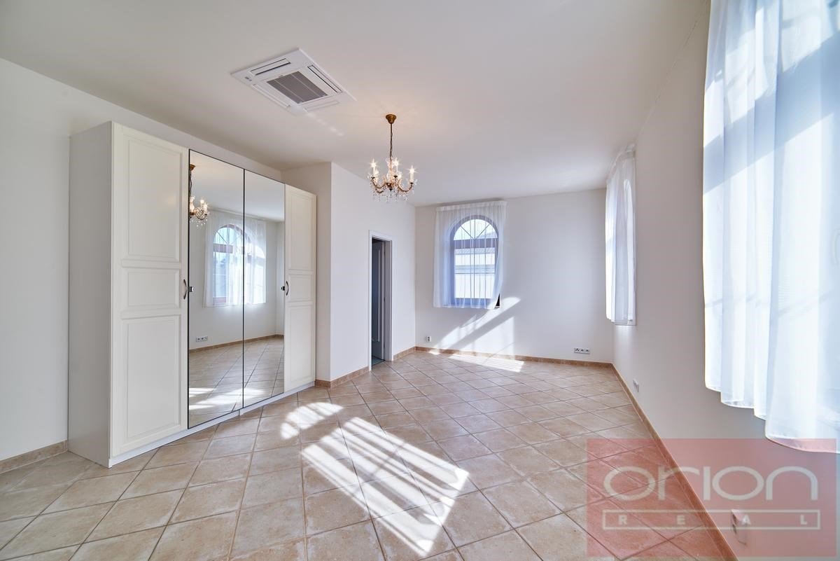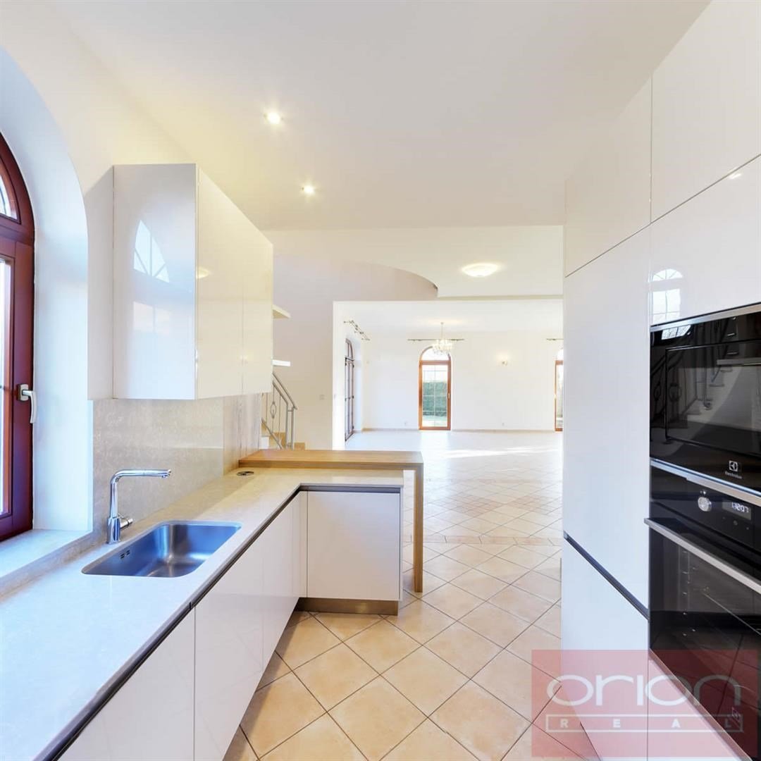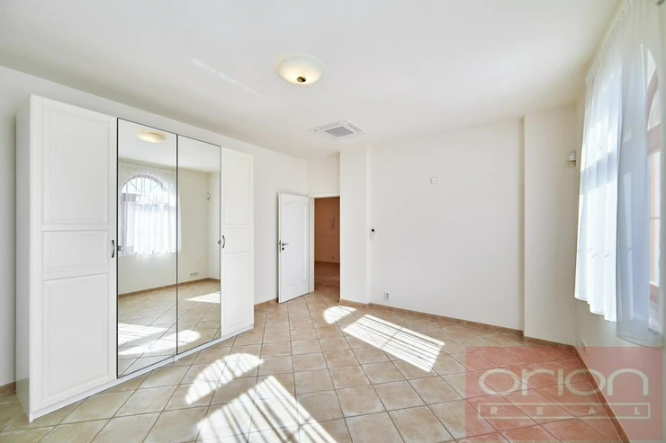 We offer for rent a representative villa four bedroom in a sought-after location in Prague 6 - Nebušice. The house is part of the closed residential complex Villas Šárka in the immediate vicinity of the ISP international school. The total living area of the house is 243 sqm and offers on the main floor an entrance hall with a cloakroom, a spacious living room with a fireplace and access to the terrace, a fully equipped kitchen, a laundry room with a washing machine and dryer, a toilet and a pantry. On the 1st floor there are 4 bedrooms (2 bedrooms have their own bathroom), the third bathroom has a corner bath, bidet and toilet, a separate toilet and access to the terrace. The house includes a well-kept garden of 605 sqm with a heated swimming pool with underwater lighting and counter-current. The house is equipped with air conditioning, underfloor heating, a gas boiler, a security system with connection to the central security desk, a spacious terrace with an electrically operated awning, a garage for 2 cars. Popular location Nebušice, in the vicinity there is an elementary and kindergarten school, a health center, shops, a sports hall and a tennis center, a nature reserve Divoká Šárka. All other infrastructure is provided by the nearby center of Dejvice. Good transport accessibility by public transport and by car to the city center and the airport. Only 8 minutes by car to the Bořislavka metro and tram station. Availabale from April 1, 2026, viewings per request.