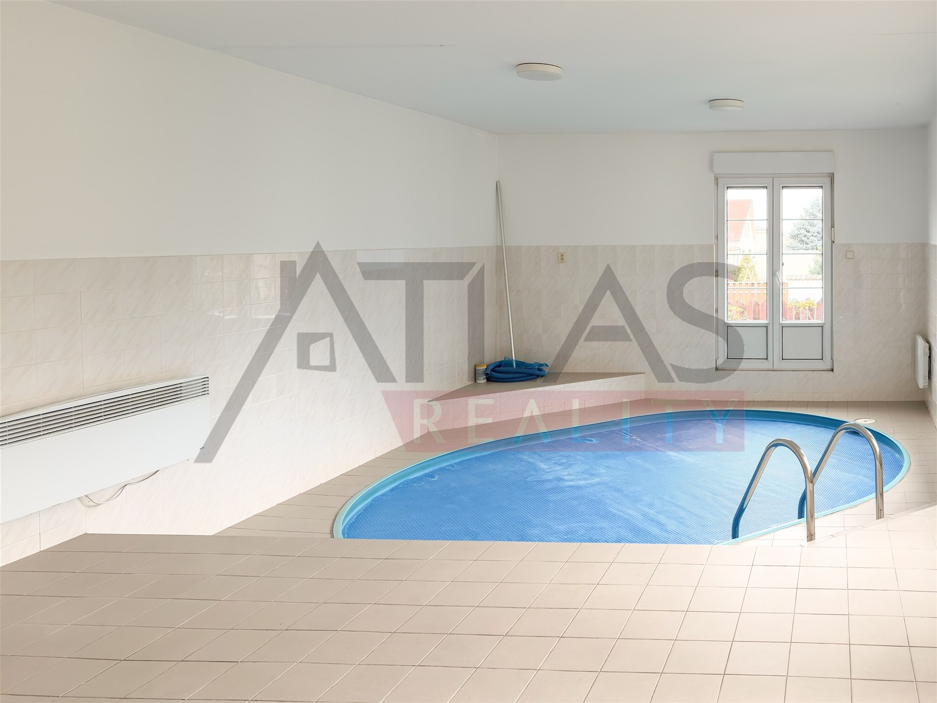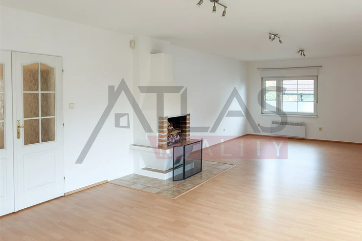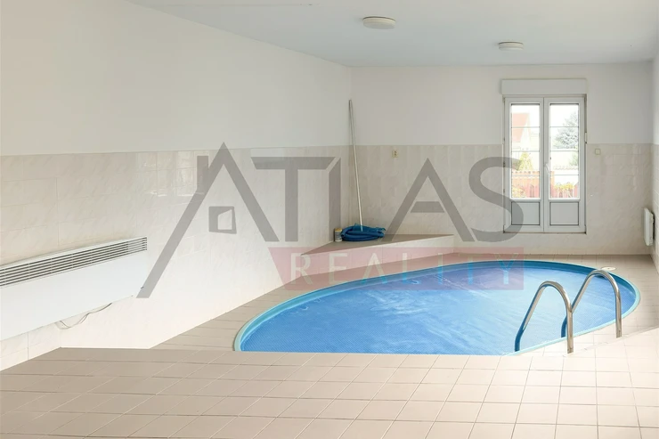 Rental of a detached family house 7+1, 365 m2 Prague 6 - Nebušice. The house is unfurnished. Living room with dining area, equipped kitchen (electric stove with ceramic hob, two refrigerators, freezer, and dishwasher), 5 bedrooms, 2 bathrooms, 2 toilets, an indoor fireplace, garage with two parking spaces. The property has PVC windows with security grilles and security shutters. Opening of garage doors and gate is controlled by automatic remote control. There is wooden mosaic flooring. The whole family house is fully basemented. A heated indoor pool with a fully automatic dehumidification unit, accessible from the living room and outdoor terrace. Water temperature can be adjusted up to 30 °C. The entire property is equipped with an electronic security system with the possibility of connection to a central security desk, telephone, satellite, washing machine. Heating of the property is provided by electric direct heaters.