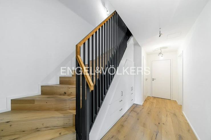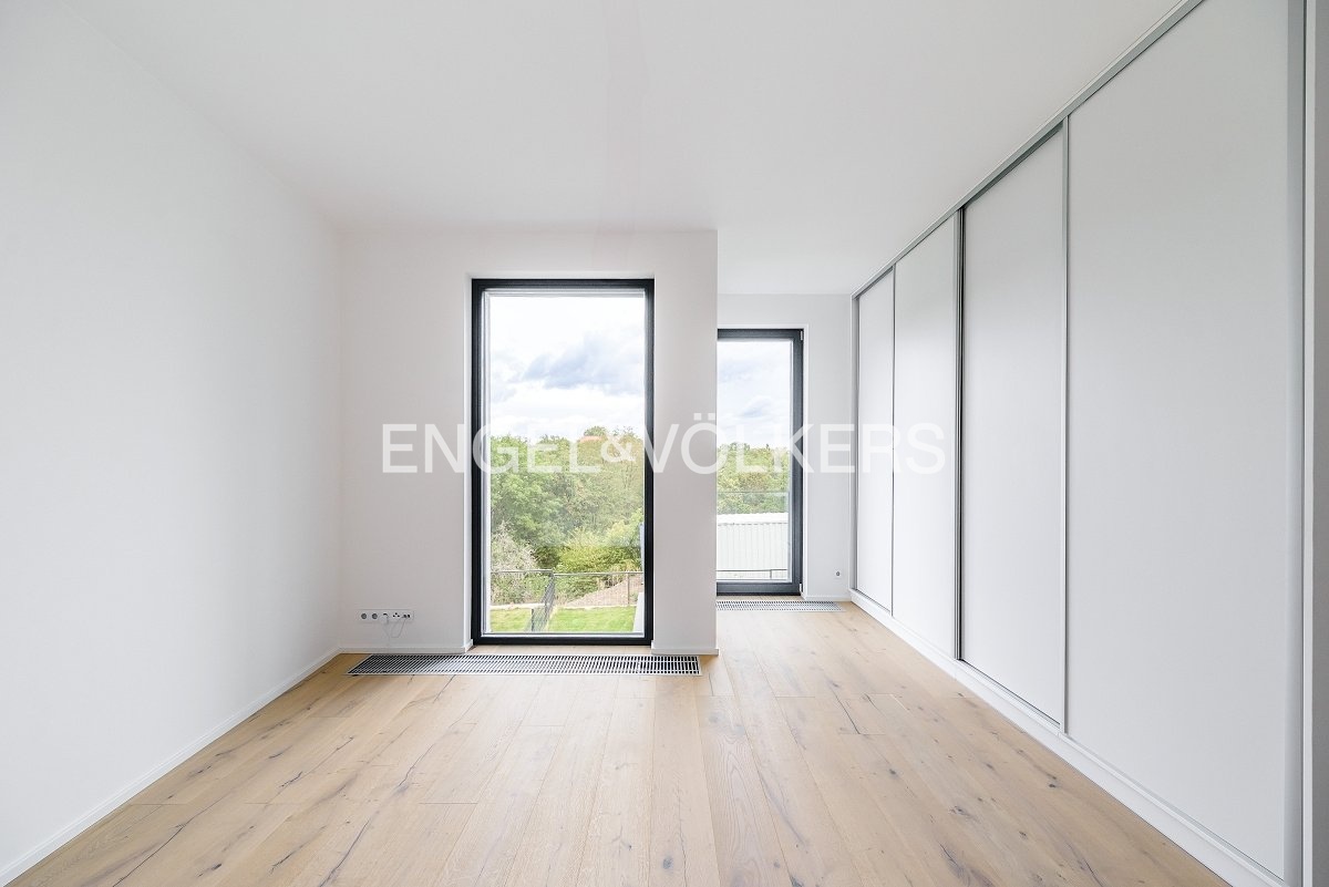 We offer for long term rent a newly completed family house of 4 + kt in a desirable residential area of Košíře. The family house is part of the new development project Top Rezidence Pomezí and thanks to its location offers excellent accessibility to the center or to the natural park Cibulka, which is only 5 minutes on foot. The house is equipped with outdoor electric blinds, air conditioning in every room and recuperation.