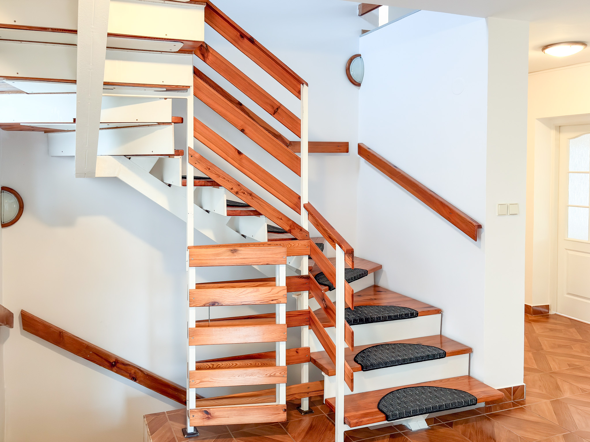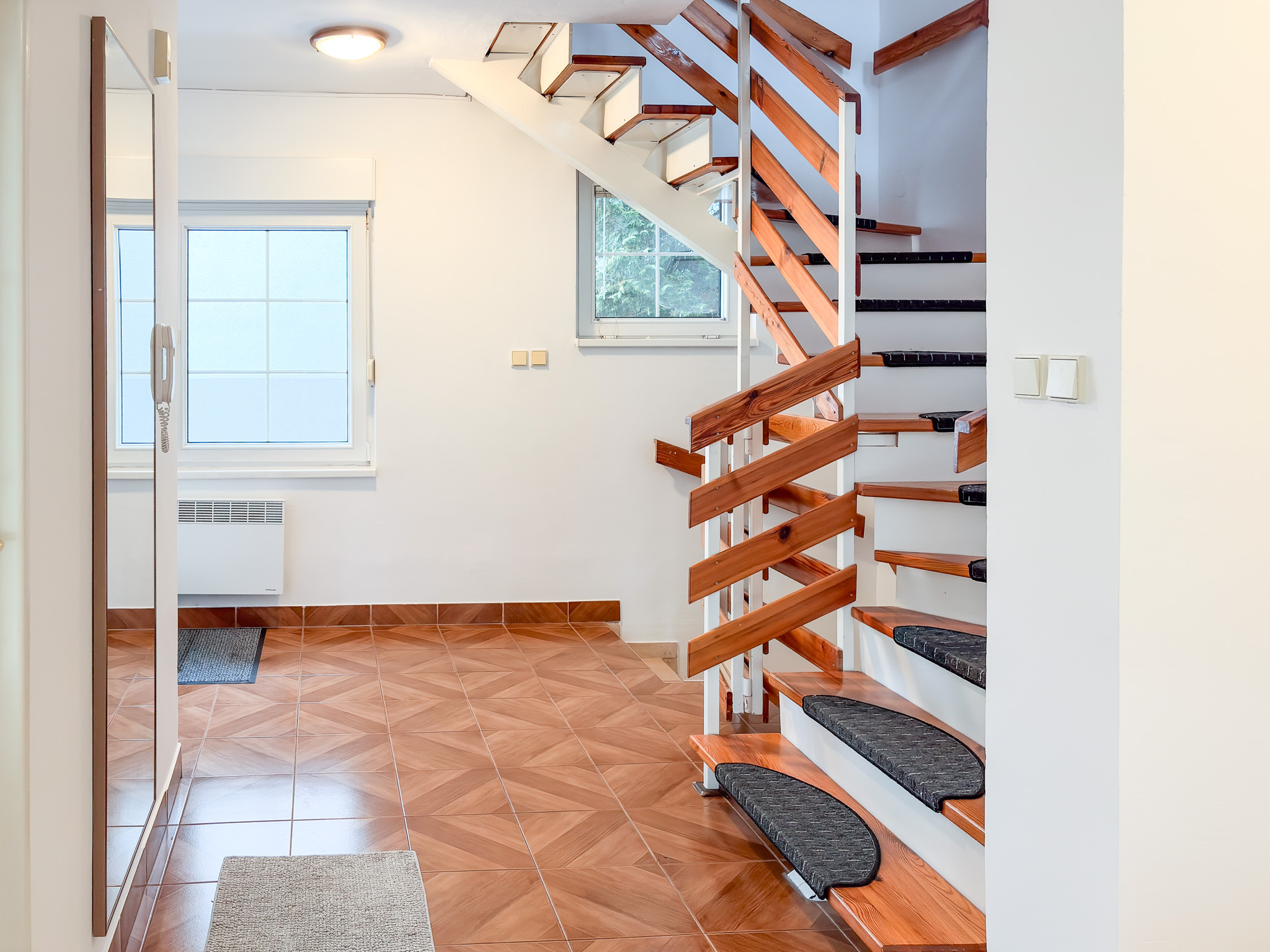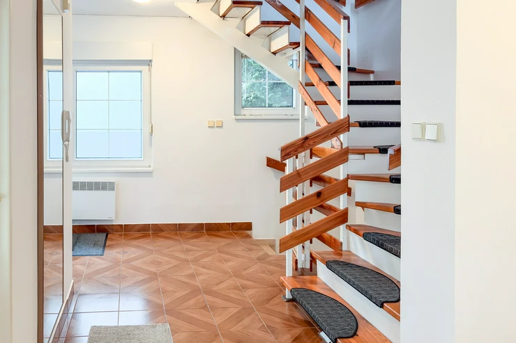 Plastic windows with security grilles and security blinds. Floors are ceramic tiles, floating floor or vinyl floor. The entire family house has a complete basement.