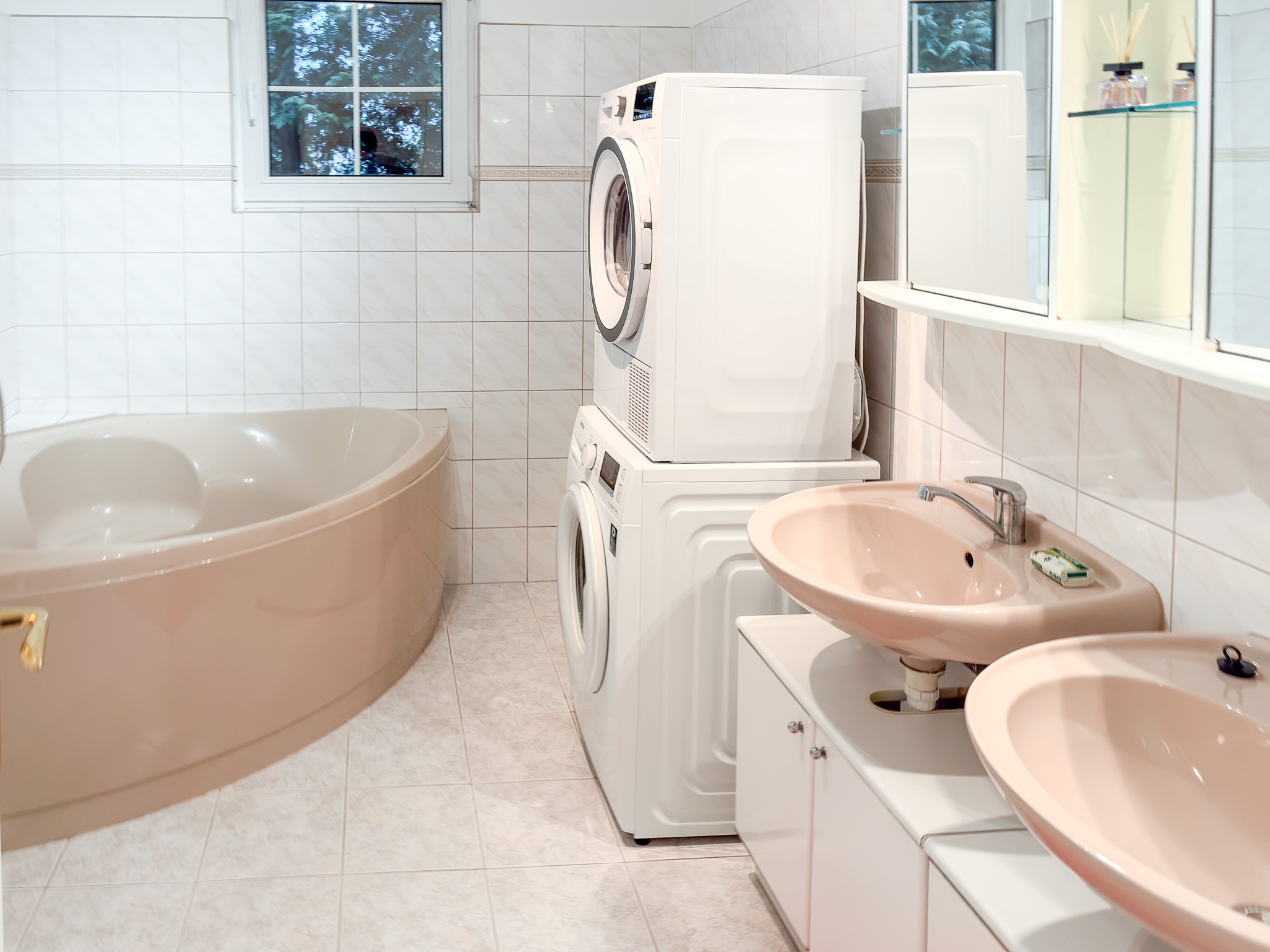 Villa for rent in Nebušice, street V Březinkách 565, built up area 365 m2, land area 600 m2, Prague – Nebušice. On the ground floor entrance hall, fitted kitchen with appliances (stove, washing machine, dishwasher, dryer, oven, fridge), bedroom, toilet, bathroom with corner bath + shower, dining room, living room with fireplace and direct access to the garden, indoor pool. Upstairs 5 bedrooms, bathroom with corner bath, toilet, balcony.