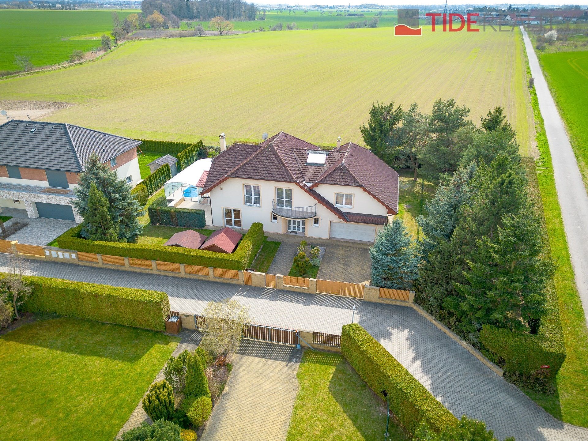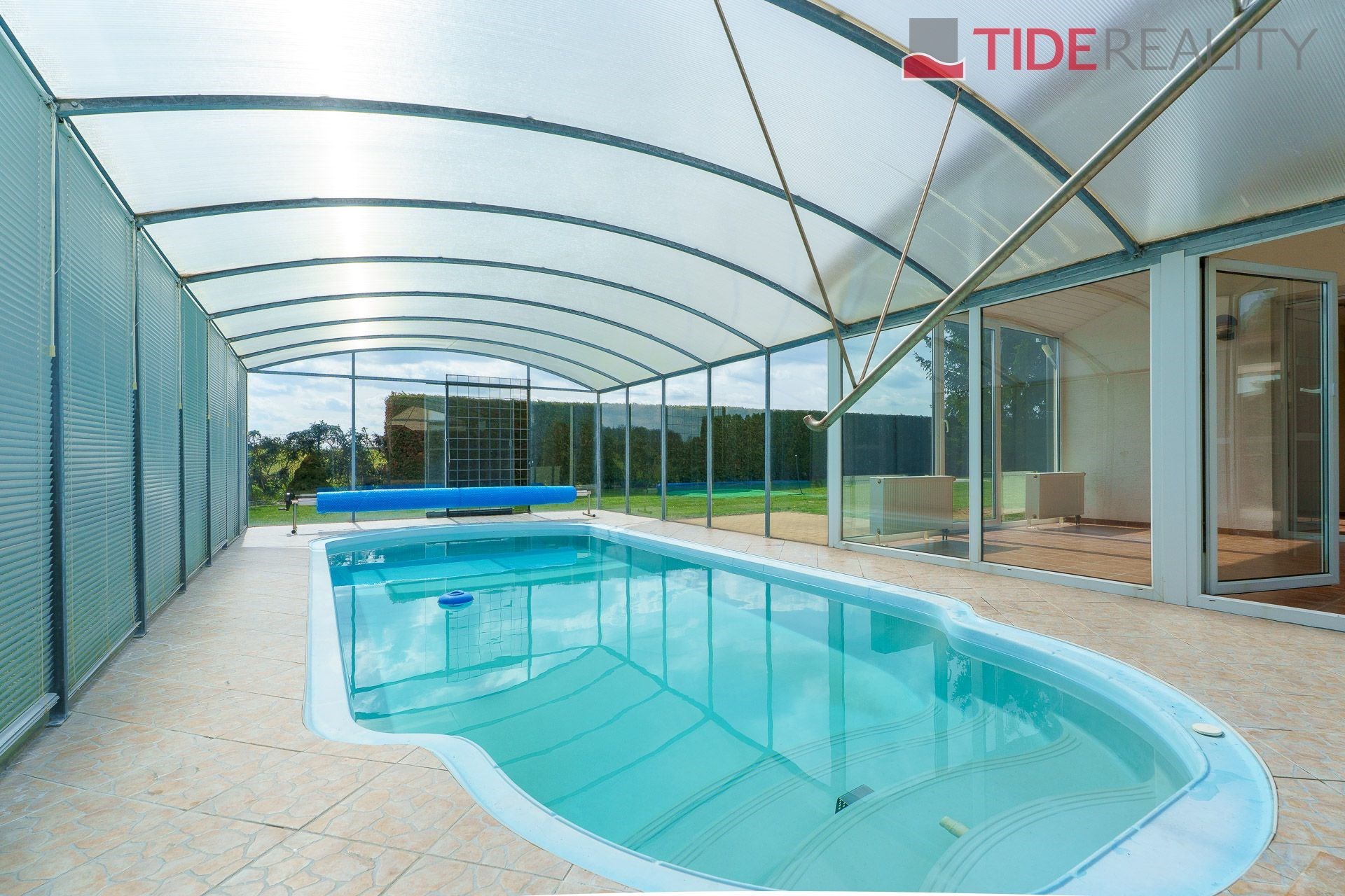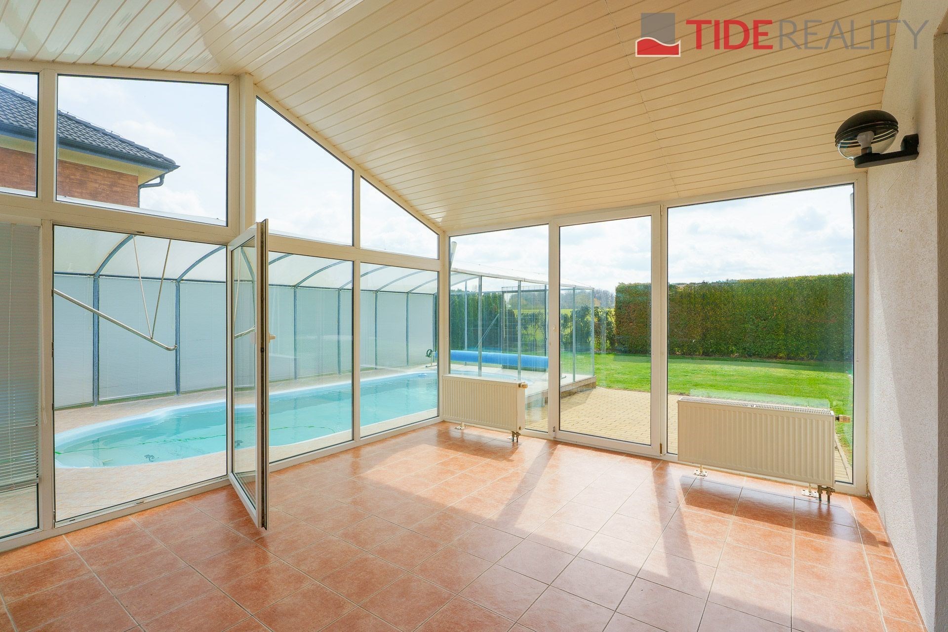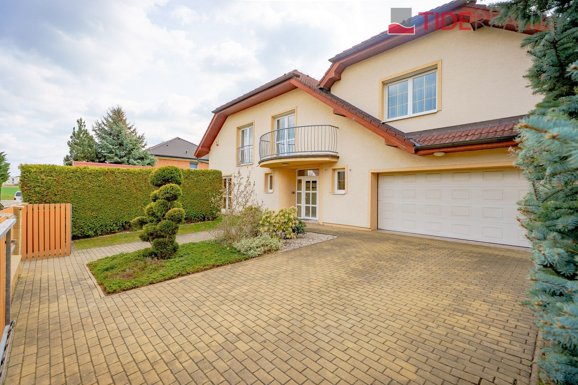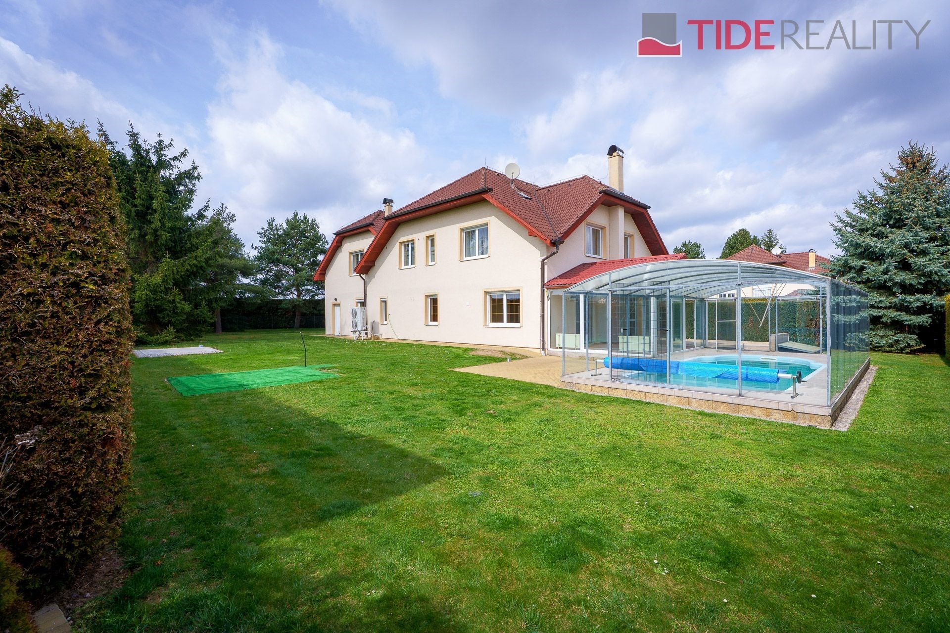 We are offering for rent a very spacious house suitable for a large family, with a total usable area of 290 m2 and a well-maintained garden of 560 m2. Spread over two above-ground floors are 5 bedrooms, a living room with a fireplace connected to a large conservatory and a covered heated swimming pool with a counter-current system, a fully equipped kitchen, a total of 3 bathrooms (one en-suite), and a separate laundry room. The house is equipped with built-in wardrobes and ample additional storage space. The house is heated through underfloor heating connected to an efficient heat pump, which reduces overall energy costs. There is a sauna on the property with necessary facilities. The garden is equipped with an automatic irrigation system. Garage for 2 cars, additional parking possible on the property in front of the house. The house is located in a quiet residential area just a few steps from nature and also within a short distance from Průhonice Park. Energy performance rating class C.