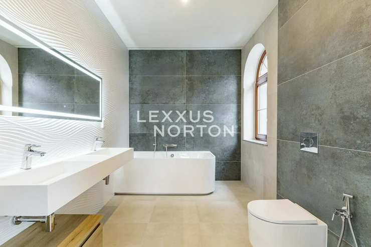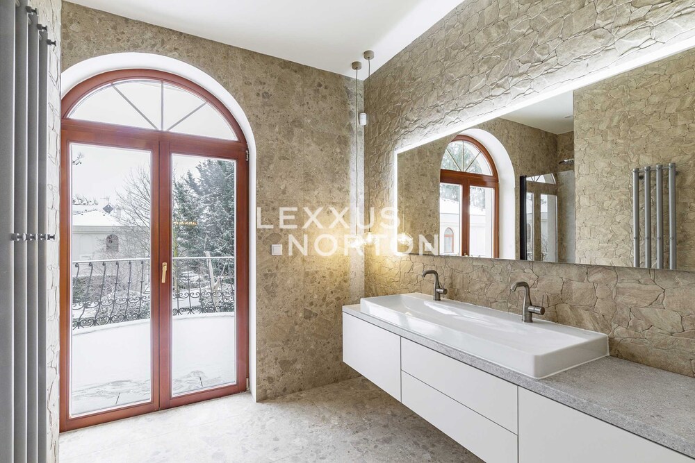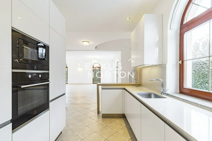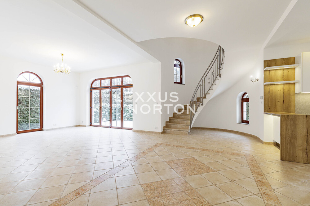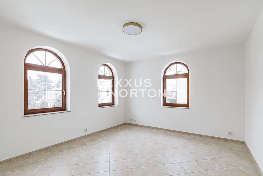We offer unfurnished representative four bedroom villa for rent of 270 sqm with garden of 328 sqm. The property is located in a closed complex Villas Sarka in a beautiful location of Prague 6 - Nebusice with all amenities and good transport infrastructure.This luxury villa for rent offers its residents the use of an entrance hall, living room with fireplace and access to the terrace/garden, kitchen with pantry, laundry room, cloakroom, separate toilet, and access to the garage on the ground floor. On the first floor there are 4 spacious bedrooms, 2 modern bathrooms, a third bathroom with access to a semicircular terrace (6 msqm) and a separate toilet.The furnishings include built-in wardrobes, plenty of storage space, a washing machine, and a dryer. The kitchen is equipped with a refrigerator with freezer, stove, oven, microwave, and dishwasher. The bathrooms have a shower and bathtub. The interior makes a very impressive impression. The house has a well-kept garden, outdoor pool, and garage.Popular residential location with mostly family houses in Prague 6, surrounded on three sides by the Nature Park Sarka - Lysolaje. Nebusice has good transport accessibility. The Borislavka metro station can be reached by public bus in 11 minutes, the motorway in 7 minutes and the Vaclav Havel Airport in 14 minutes. Within walking distance you will find complete civic amenities - a supermarket, post office, municipal office, pharmacy, general practitioners' offices, cafes and restaurants. Directly in the locality there is a kindergarten, primary and art school and prestigious international schools - International School of Prague, Riverside School, Prague British International School. For leisure activities you can use tennis courts, 2 swimming pools, children's and workout playgrounds or the Nature Park Sarka. The inquiring client agrees to pay a commission of 1 month's rent plus VAT. If you cannot view the property in person, we also offer you a video tour from the comfort of your home in real time via Messenger, WhatsApp and other communication platforms.
