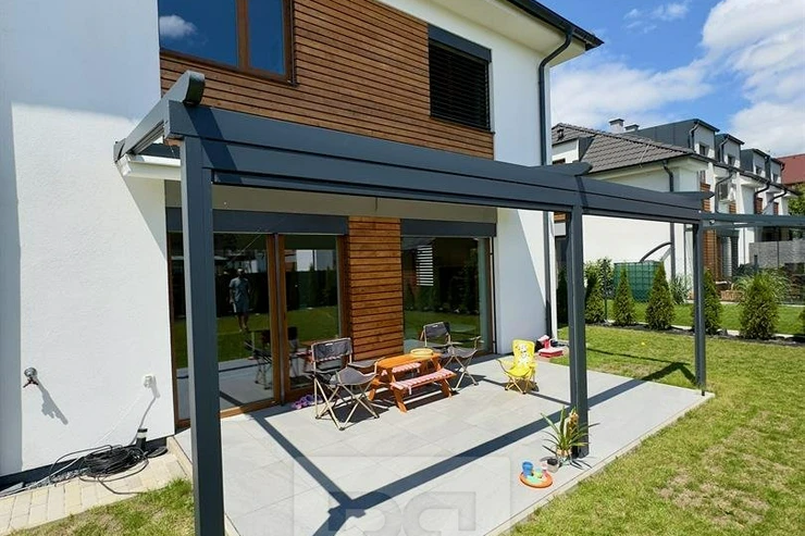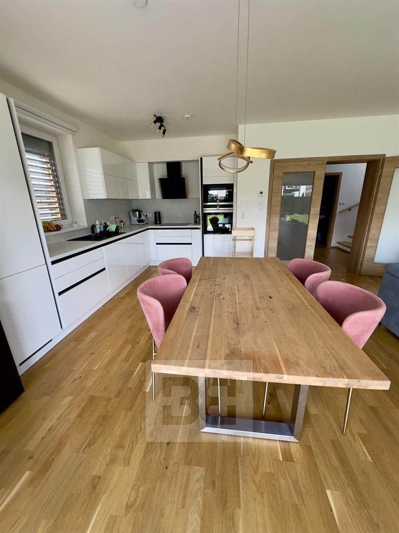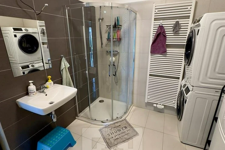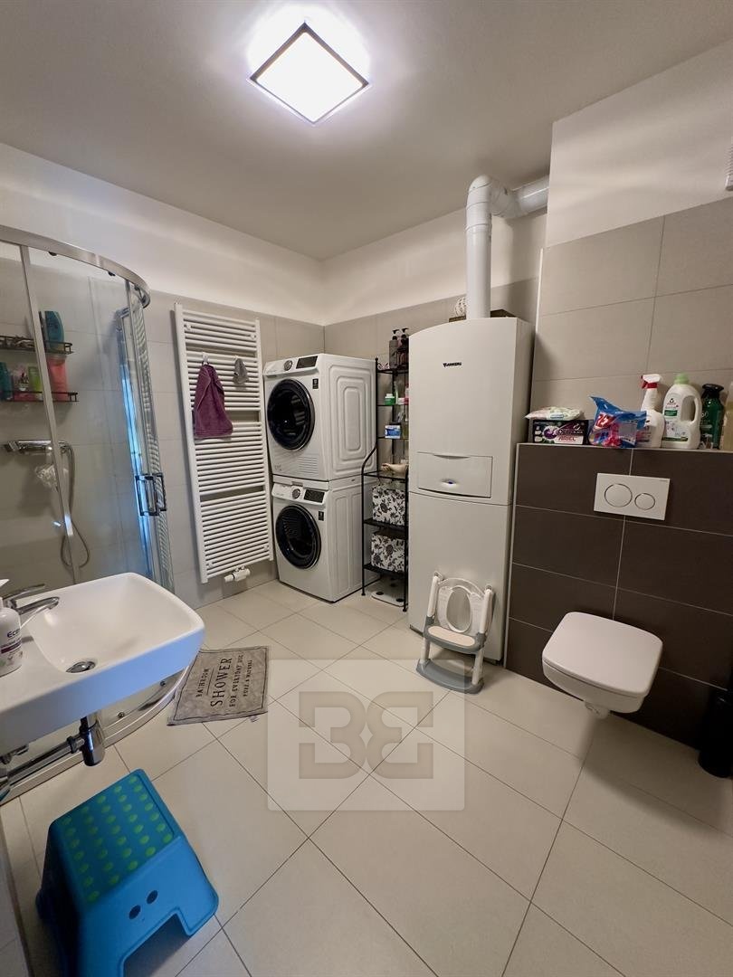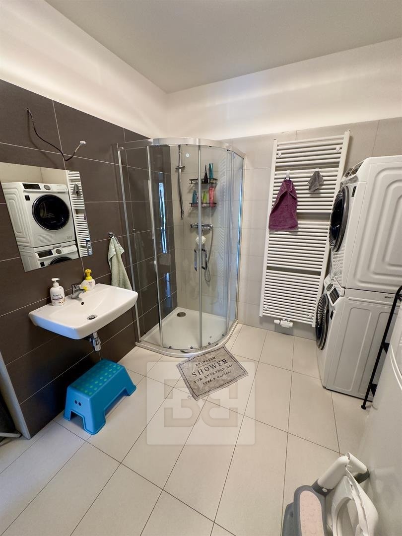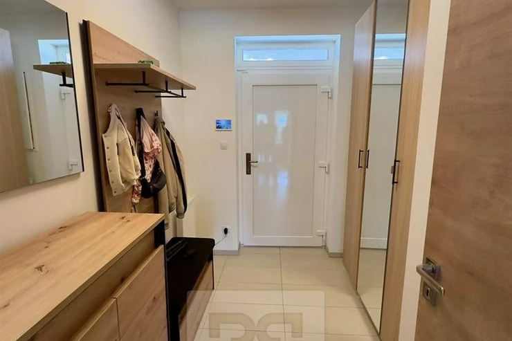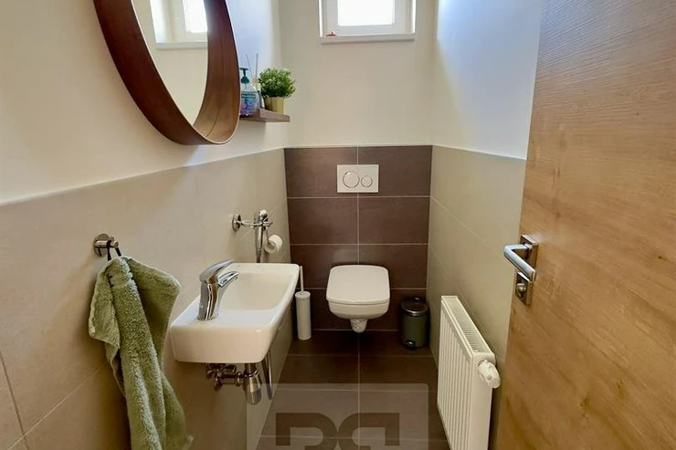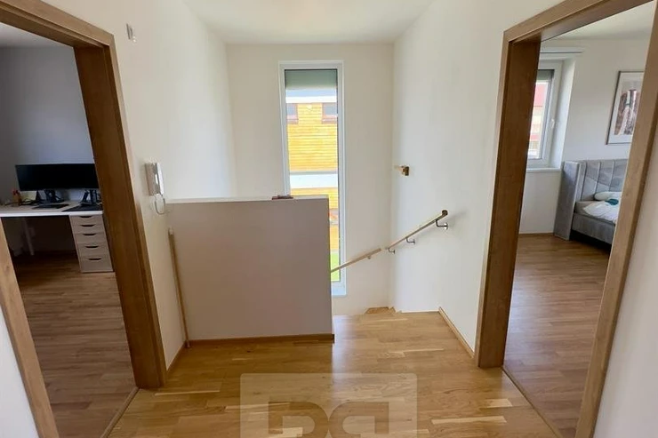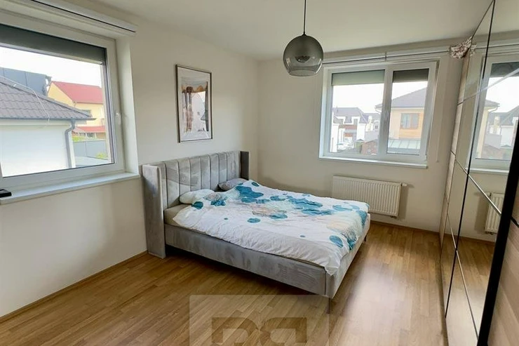 We offer you a one-story family house for rent with a living area of 144 m² and a garden of 350 m², in Borová street - Zlonín village. The ground floor consists of an entrance hall, a bathroom with a shower and a toilet, a washing machine and a dryer are available, a guest room with equipment (see photo), a storage room in the area under the stairs and a living room with a kitchenette fully equipped with built-in appliances. The American fridge and other equipment remain, except for the TV, sofa and coffee table. From the living room you can access the 17 m² terrace with an electric awning and shading, and the 350 m² garden with a 14 m³ rainwater tank. We go up the stairs to the first floor, which consists of a hall, a separate toilet, a bathroom with a bathtub, two offices that will remain empty, tables and chairs can be left under agreement, a bedroom with a spacious wardrobe and a children's room. The house has a garage of 37 m². The shelving, second fridge, grill, water softener and garden equipment remain here. Window blinds installed in the windows, a smart home controlled by a mobile application, a second water meter for utility water, which is 50% cheaper.
