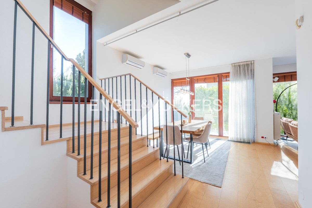 We offer for long-term rent a spacious and bright 6+kt terraced house in the sought-after residential area of Jinonice. Thanks to its location, the house offers excellent access to the city centre via the yellow line of Metro B, to the airport, or to Cibulka Nature Park, which is only a 5-minute walk away. In the vicinity, you will also find a full range of amenities in the form of cafes, shops, and schools, such as the DSP International German School or the Galerie Nové Butovice shopping centre.