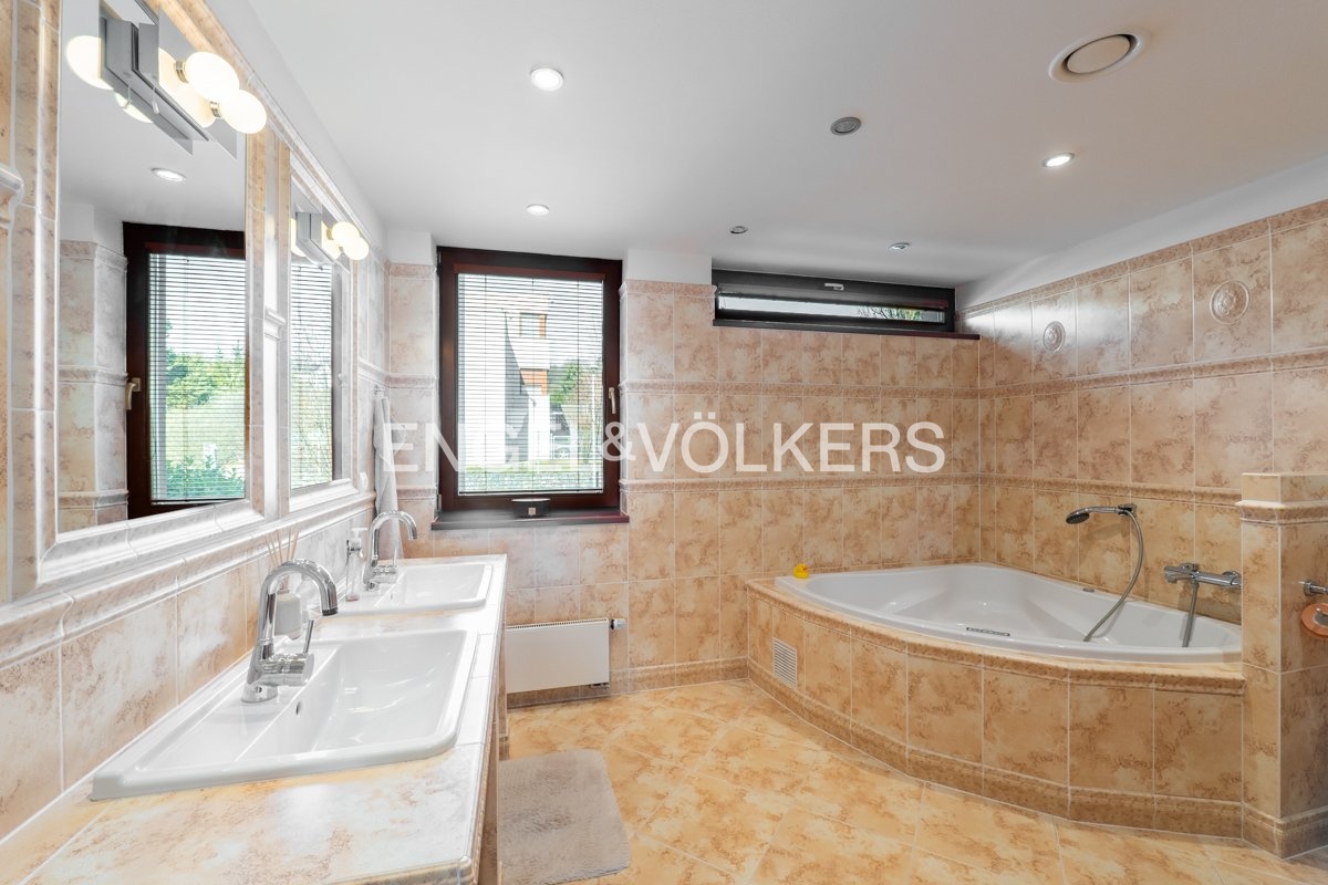 - Spacious bathroom with bathtub and shower