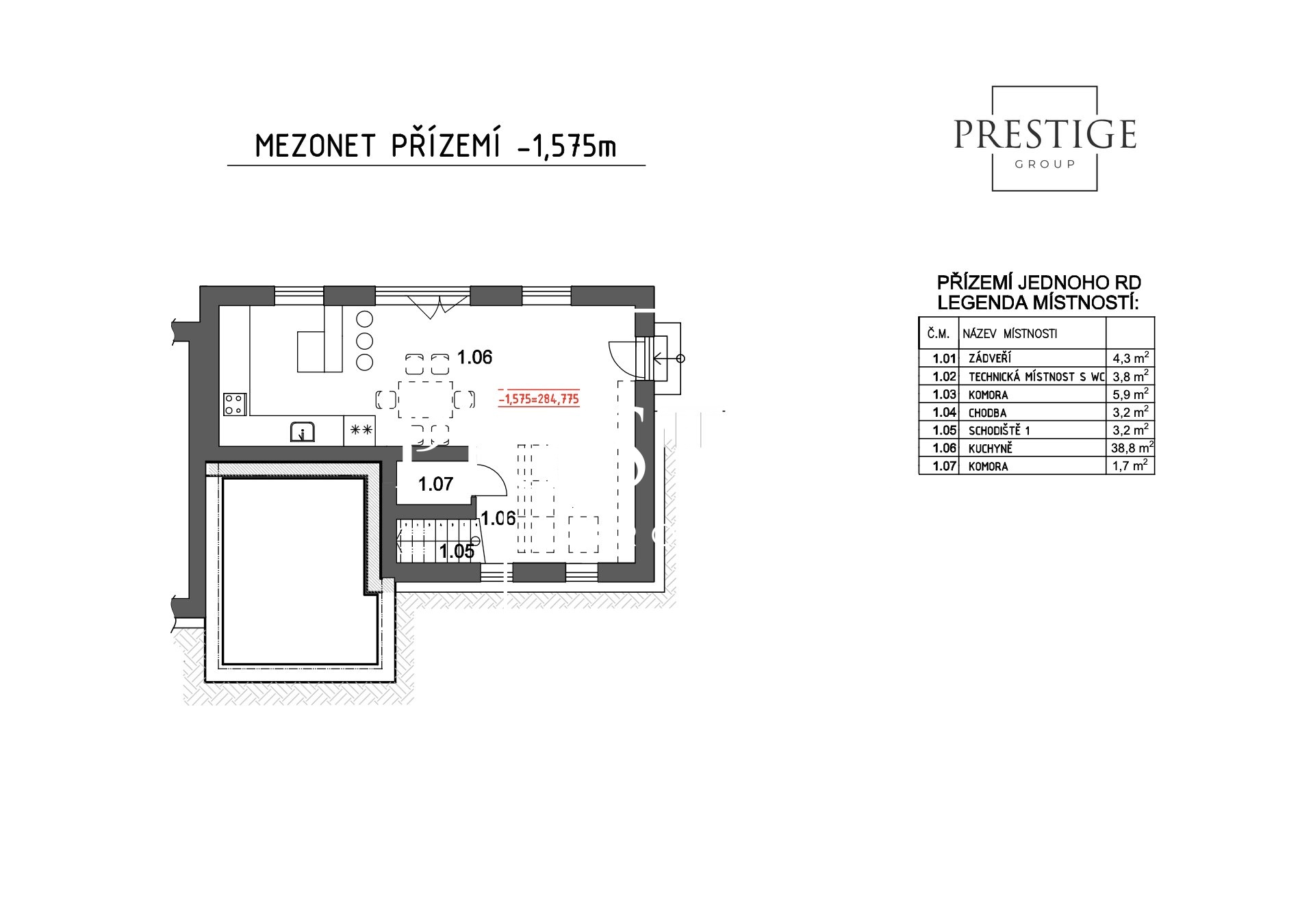 PRESTIGE GROUP offers for rent a modern terraced family house 4+kk with a floor area of 120 m² (plot 317 m²) located in the quiet village of Stehelčeves. This fully furnished and equipped house, built in 2020, is situated at the end of a cul-de-sac – ideal for a family seeking privacy, a garden, and quick access to Prague (10 minutes via D7 motorway).