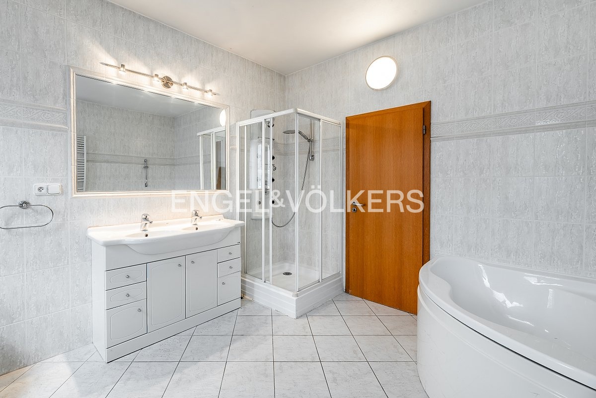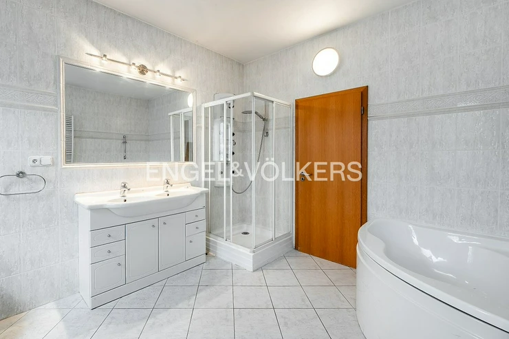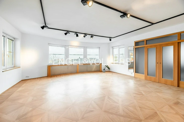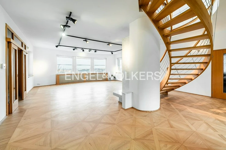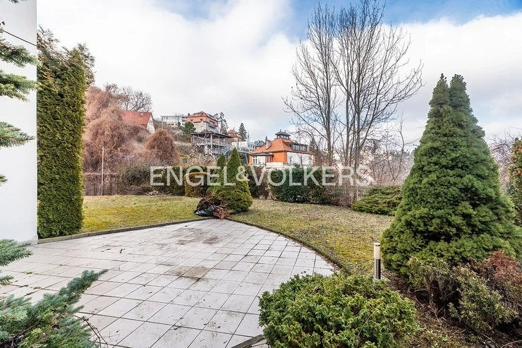 An exceptional villa is now available for rent in one of the quietest residential areas of Smíchov, in the immediate vicinity of Prokopské Údolí Nature Park. The property offers a high standard of living, maximum privacy, and beautiful views of the Prague skyline and Vyšehrad. The house also features a relaxation area with an indoor pool and sauna, providing the ideal space for rest and rejuvenation.