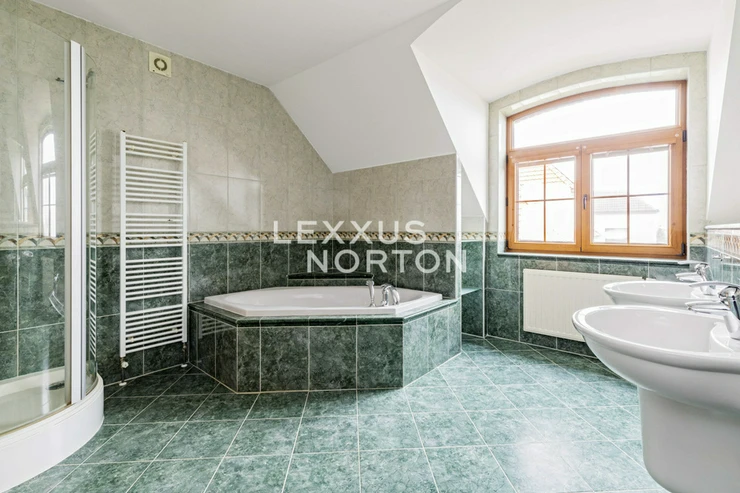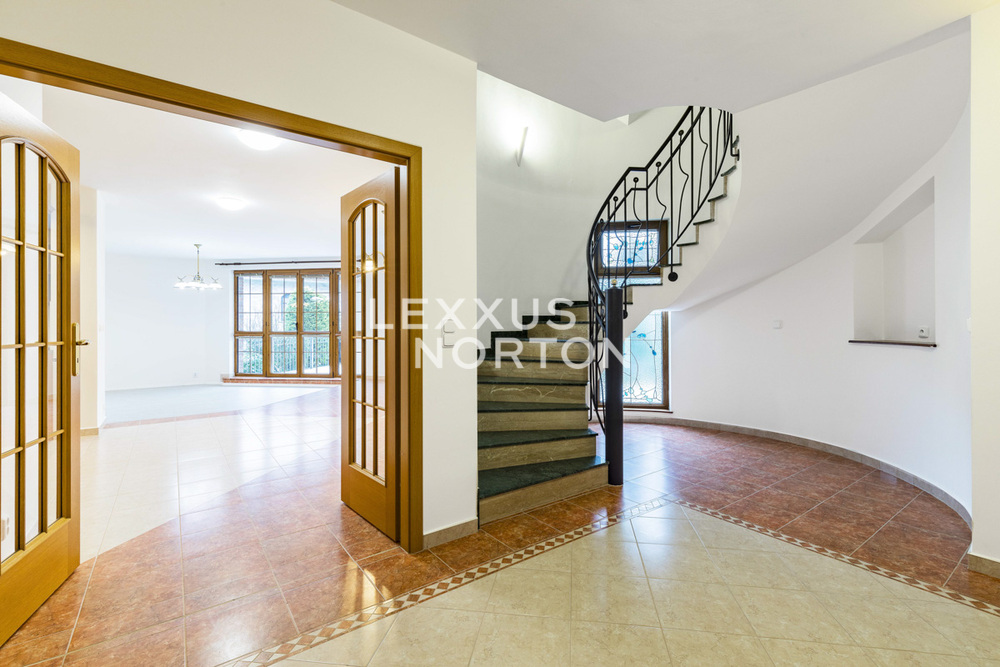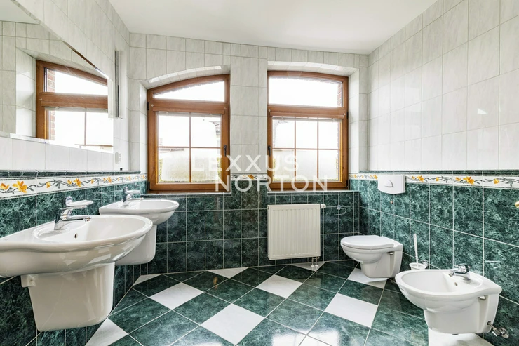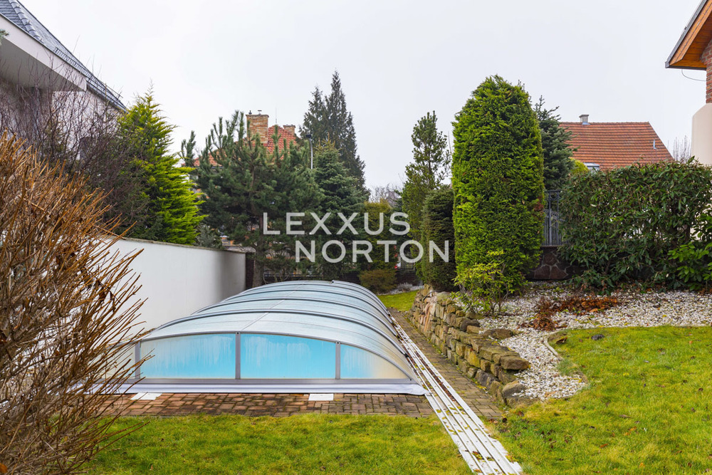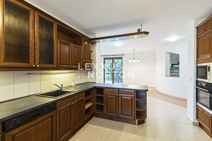 An exclusive unfurnished single-family home for rent is located in one of the most sought-after neighborhoods in Prague 6 – Nebusice. This spacious 8-bedroom home, with a total area of 380 sqm, is situated in the immediate vicinity of the ISP International School. The location offers excellent transportation access to both the city center and Vaclav Havel Airport.This 8- bedroom villa for rent, featuring a heated pool and sauna, offers a spacious entryway, a living room with a dining area, a separate fully equipped kitchen with access to the terrace, and a guest bathroom. The second floor features two spacious halls, six bedrooms, two fully equipped bathrooms, a laundry room, and two balconies. The property includes a two-car garage and a beautiful, well-maintained garden spanning 670 sqm.The villa is being offered unfurnished, but includes a fully equipped kitchenette with appliances: stove, oven, refrigerator, freezer, dishwasher, and microwave. The property also features built-in closets, an alarm system, a gas boiler, a home intercom, a washer, a dryer, and a garden shed. The floors are a combination of laminate flooring and tile.A sought-after residential location with mostly family houses in Prague 6, surrounded on three sides by the Nature Park Sarka - Lysolaje. Nebusice has good transport accessibility. The Borislavka metro station can be reached by public bus in 11 minutes, the motorway in 7 minutes and the Vaclav Havel Airport in 14 minutes. Within walking distance you will find complete civic amenities - a supermarket, post office, municipal office, pharmacy, general practitioners' offices, cafes and restaurants. Directly in the locality there is a kindergarten, primary and art school and prestigious international schools - International School of Prague, Riverside School, Prague British International School. For leisure activities you can use tennis courts, 2 swimming pools, children's and workout playgrounds or the Nature Park Sarka.The inquiring client agrees to pay a commission of 1 month's rent plus VAT. If you are unable to view the property in person, we also offer you a video tour from the comfort of your home in via Messenger, WhatsApp and other communication platforms.