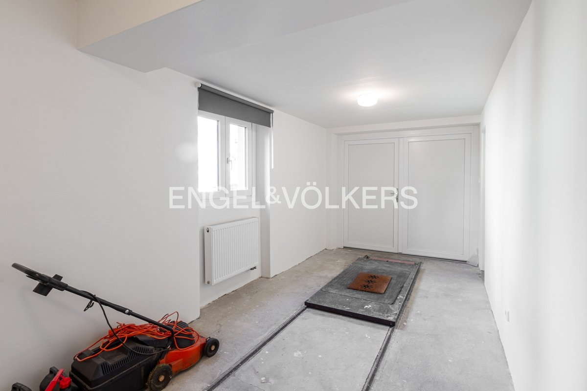 The ground floor features an entrance hall, a bathroom with a utility room, and a spacious living room with a fully equipped kitchen and direct access to the garden. On the 1st floor, there is a hall with access to the terrace, bedrooms, and one bathroom. All bedrooms are separate – two of them have an en-suite bathroom and a built-in gallery, one bedroom has a spacious walk-in closet, and one has built-in wardrobes. In the 1st basement level, there is a utility room and a cellar with an area of 24 sqm.