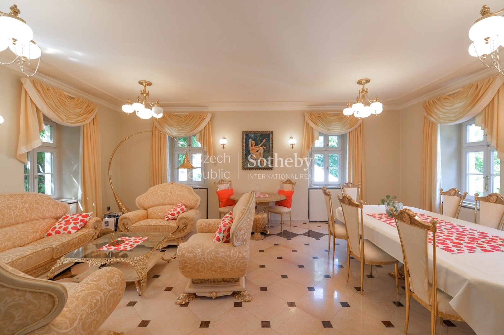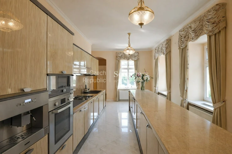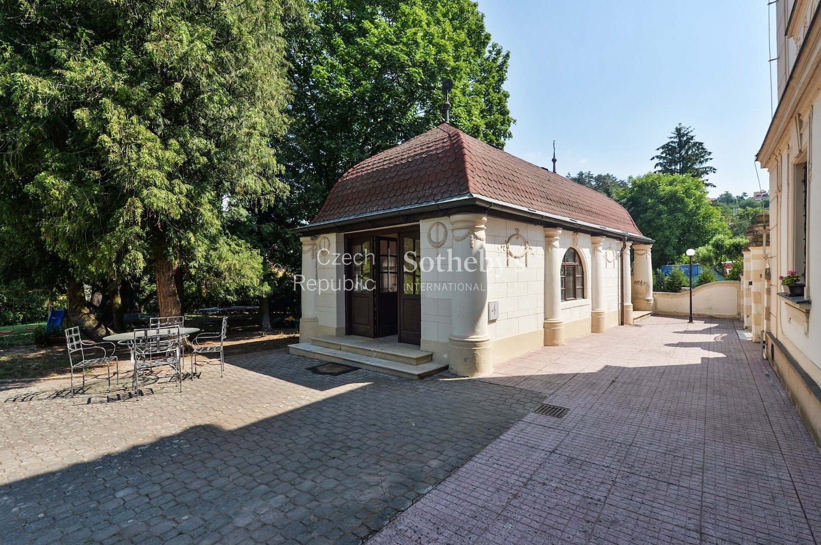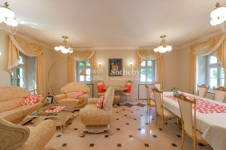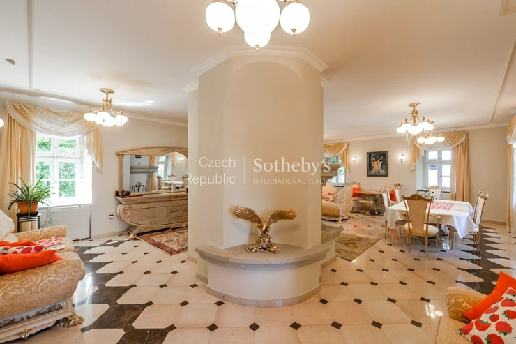 Sotheby’s Int. Realty Czech Republic offers for rent a unique chateau in Všenory, which is an ideal place for representative living. The property is set in a large English park with mature greenery, complemented by a garden gazebo, which in the summer months serves as a backdrop for relaxation and social events. The location stands out for its peaceful character and excellent accessibility to the center of Prague.