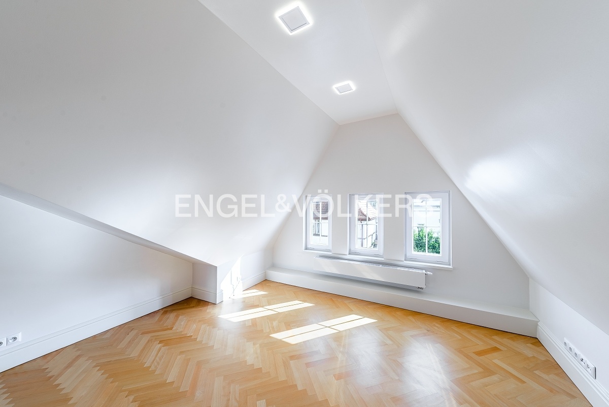 Impressive terraced villa after complete renovation with a charming garden located in an exclusive location. Thanks to a very successful renovation, which has preserved some of the original features, and a perfect location characterized by tranquillity, privacy and excellent transport access to the city centre and the airport, this corner villa offers an unrepeatable opportunity to live.