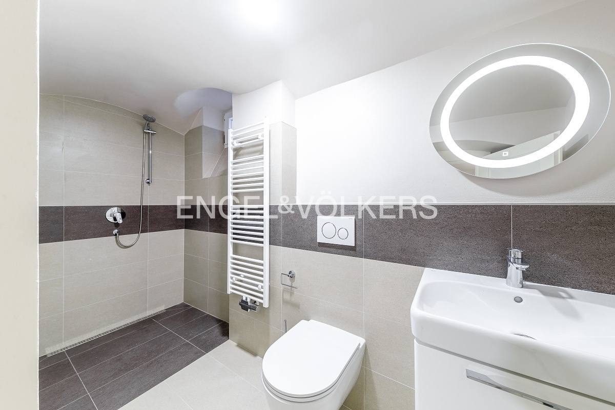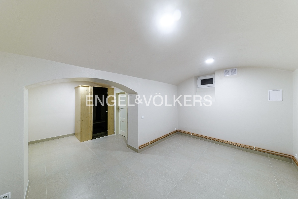The first floor consists of two bedrooms and two bathrooms, with the larger of the bathrooms, which has a shower cubicle and toilet, being directly connected to one of the bedrooms. In the attic, there are two more large bedrooms and a bathroom with a shower and toilet. In the basement of the house, there is an infra-sauna adjacent to the bathroom and a possible smaller gym. There is also a fitted laundry room and a new boiler room with storage in the basement.