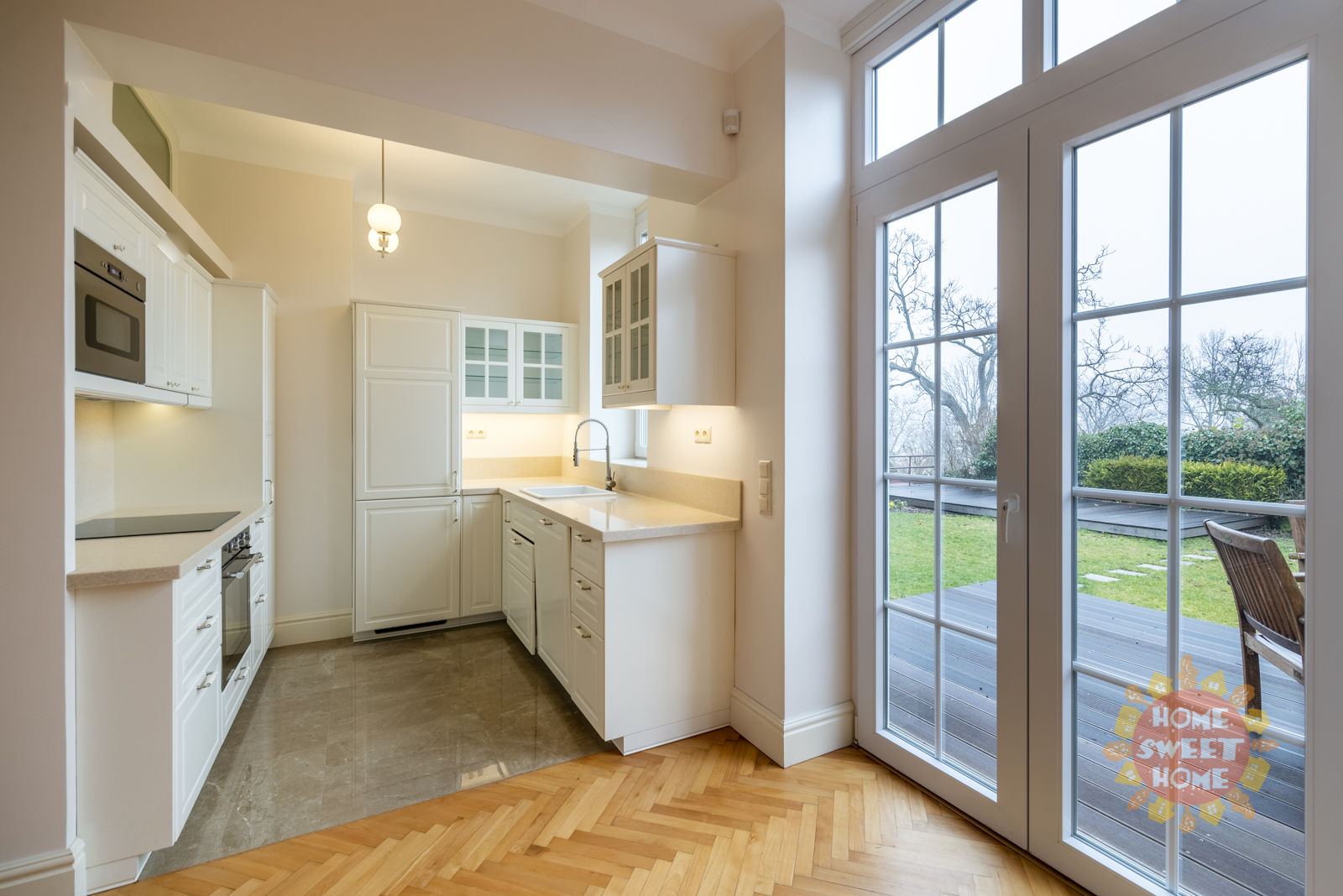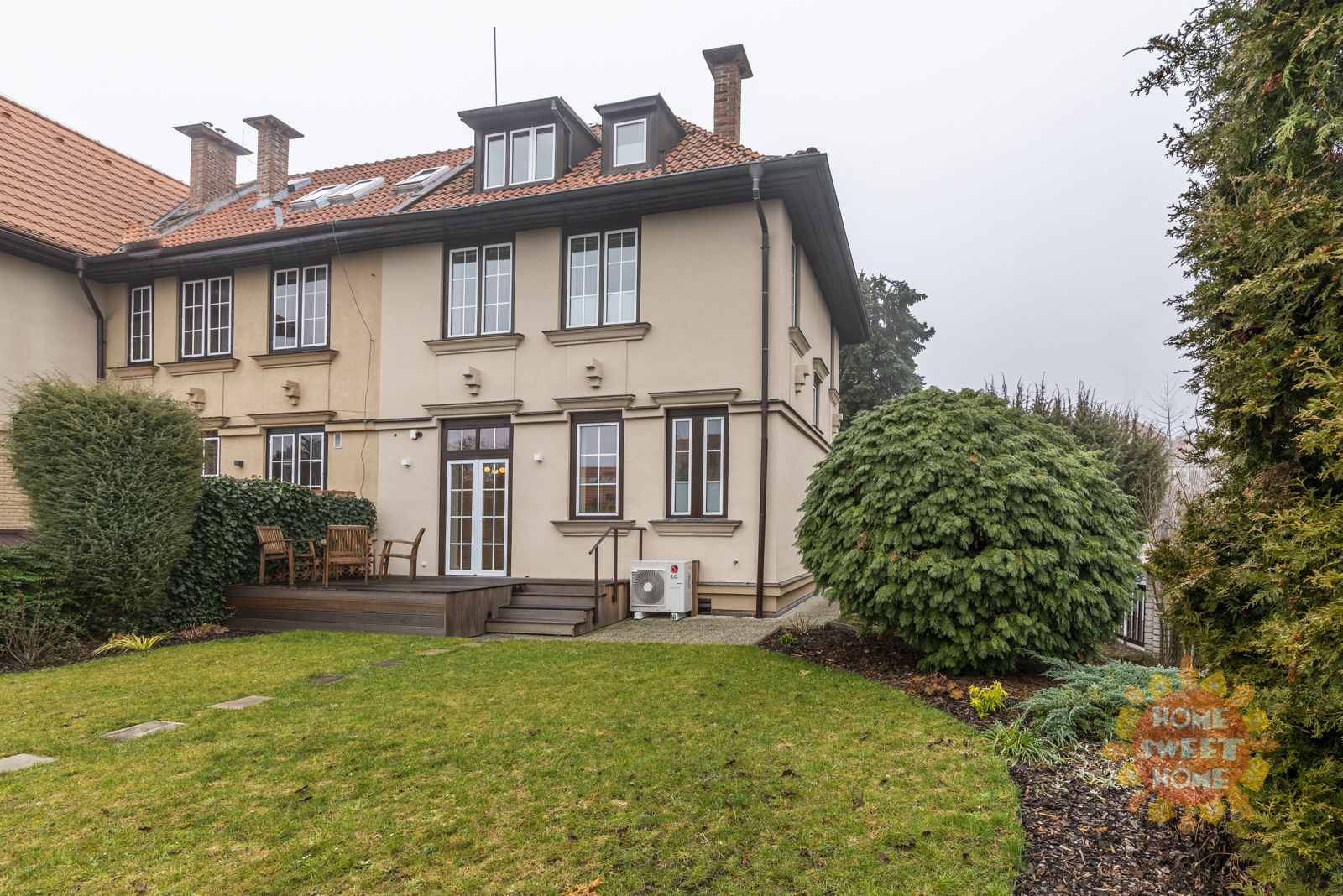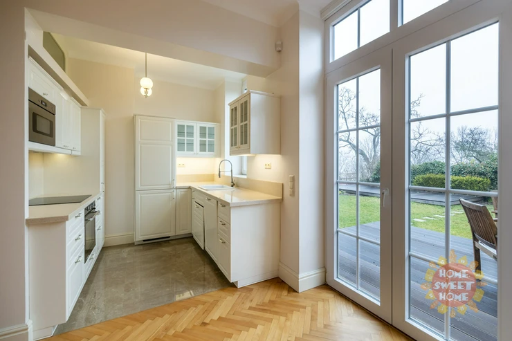 We offer for rent a beautiful unfurnished newly renovated villa with a garden, located in the Prague district of Ořechovka in the locality of Prague 6 - Střešovice. The size of the usable area is 222 m2, the land area is 250 m2. The ground floor consists of a spacious living room connected to the dining room and a fully equipped kitchen. Through French windows in the dining room it is possible to enter the garden with terrace. On the ground floor we will also find a toilet and an entrance hall, through which we get to the stairs. The first floor consists of two bedrooms and two bathrooms, one of which belongs to one of the bedrooms. in the attic of the house are two more spacious bedrooms and a bathroom with shower and toilet. The basement is equipped with an infrared sauna, bathroom with shower and toilet, a small gym, laundry and boiler room with storage space. The villa is located in a relatively quiet location with good access to the center. All civic amenities near the house - shops, cafes, sports, parks, elementary school, kindergarten, pharmacy, cinema, theater, ATMs. Bus stop Pod Vyhlídkou located 100 meters from the house, tram stop Ořechovka - 5 minutes from the house.