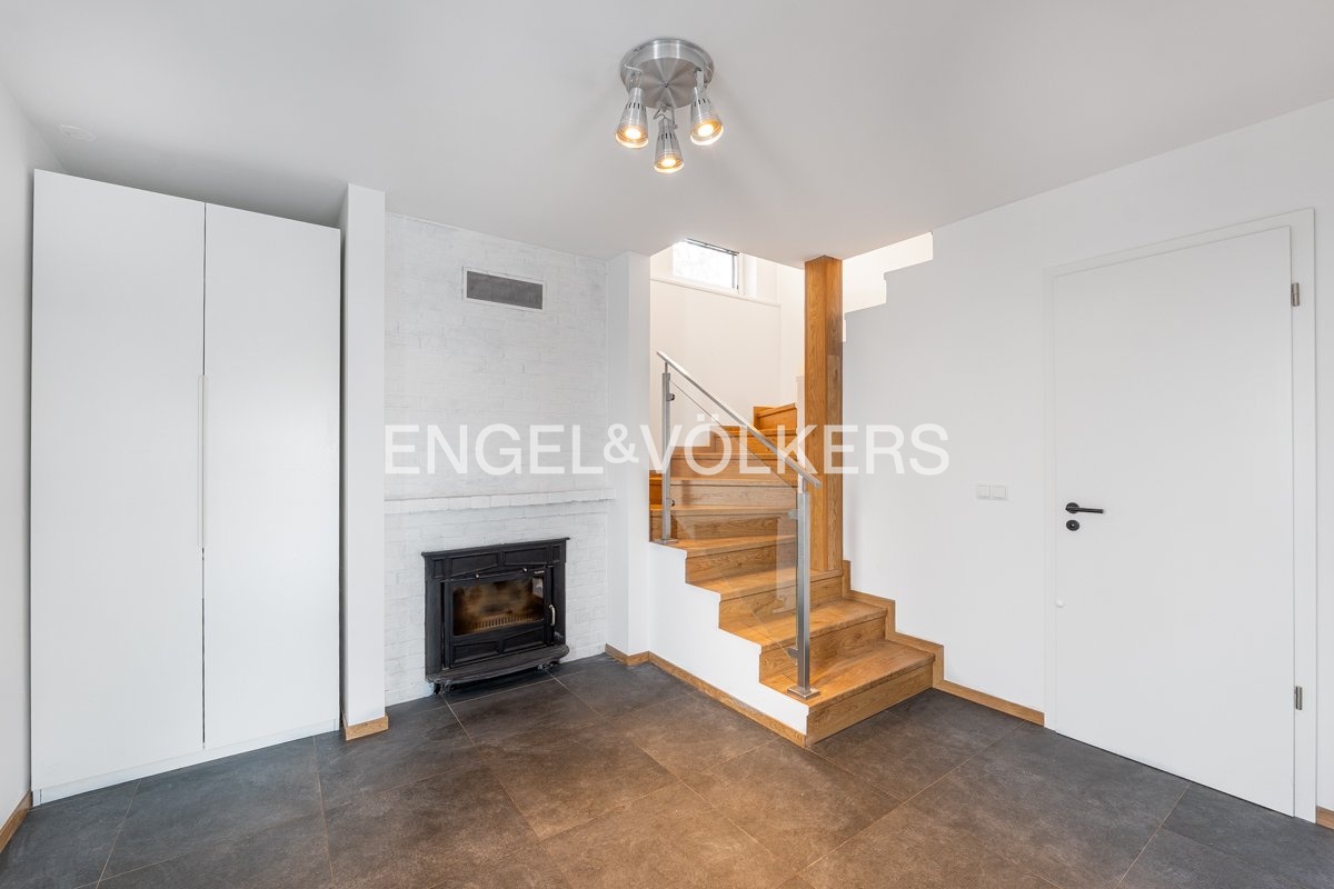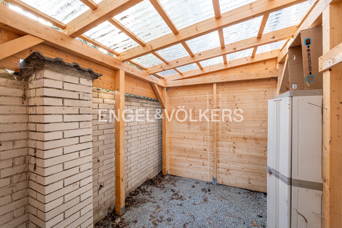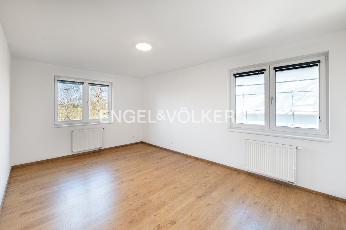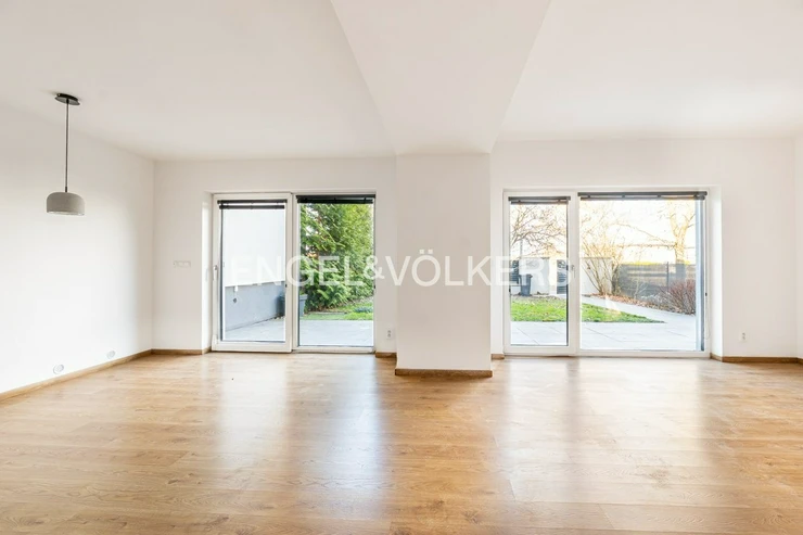 Generously designed private villa with a beautiful garden inspired by style of an American architect F.L. Wright. Large garden, 2 car-garage and swimming pool with the relax zone belong to the elegantly designed villa with layout 7+1 and to the studio apartment with bathroom and separate entrance. Representative entrance hall with the entrance to the workroom, open living room to the dining room, library with a fireplace and the entrance to the garden in the ground floor. Fully equipped kitchen with the access to the technical room and to the separate studio apartment. The first floor provides four separate ensuite bedrooms. The master bedroom with the access to the balcony overlooking the garden provides large cloakroom with built-in wardrobes and direct access to the luxury bathroom. Quiet residential location with all public amenities and rich of sport opportunities.