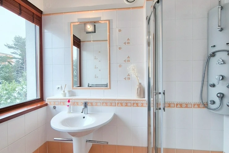 Other equipment: kitchen equipped with built-in appliances (induction cooking hob, electric oven, dishwasher, microwave oven, refrigerator with freezer), also washing machine, dryer, built-in wardrobes, interior and exterior blinds, security alarm system, central vacuum cleaner, air-conditioning, gas heating combined with a floor heating in the bathrooms, wooden floors and tiles, cabling for high-speed internet (up to 2 Gb/s). The house is partially furnished as shown in the photos; the furniture can be left in the house or removed.