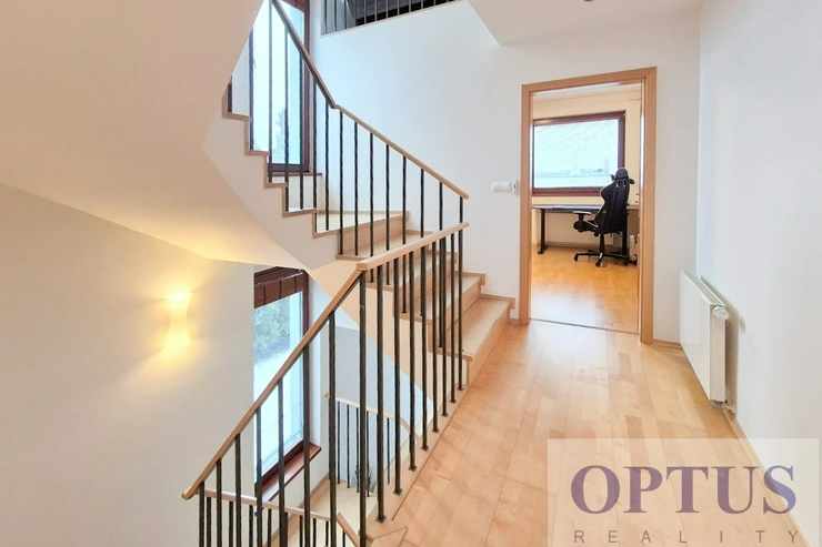 - on the 2nd floor there is an open gallery suitable as a study / guest room (26 m2) with access to a roof terrace with a beautiful view of Prague 5.