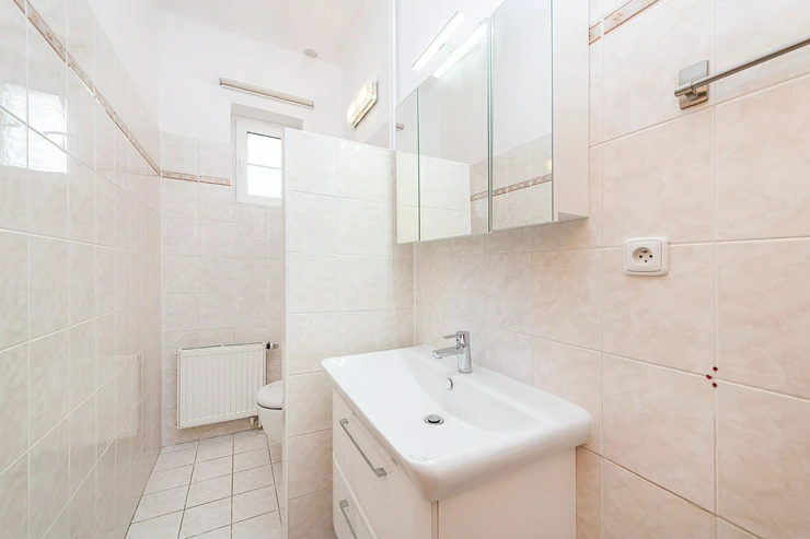 Within walking distance, there is a supermarket, restaurants, a bistro, primary and kindergarten schools, a medical center, a sports hall, and a tennis center, as well as the Divoká Šárka nature reserve. Additional full amenities can be found in the nearby center of Dejvice.