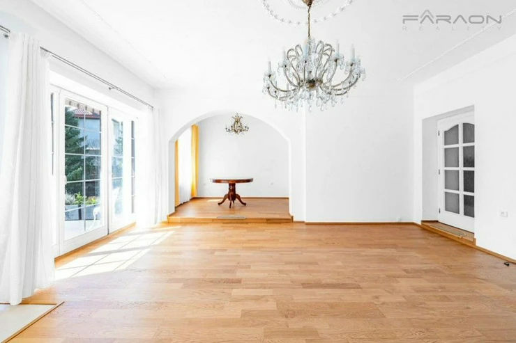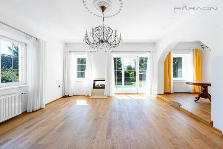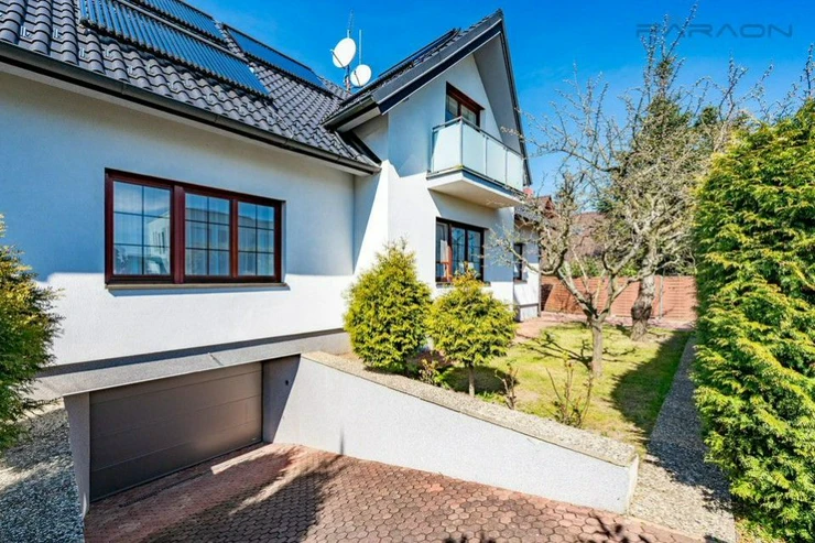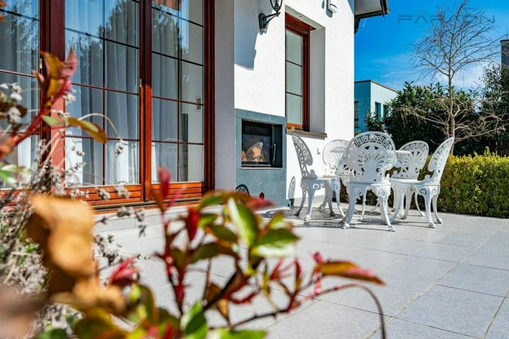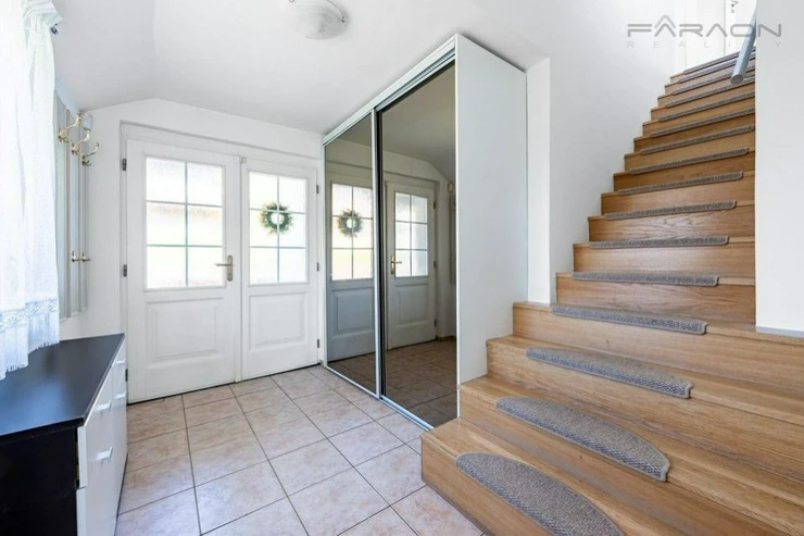 The house is equipped with modern technologies for your maximum comfort, including underfloor heating, electric blinds and a central vacuum cleaner. The high standard and energy efficiency are ensured by an economical heating system supplemented with solar collectors. The entire space is sensitively complemented by high-quality parquet and tiles, which underlines its timeless character.