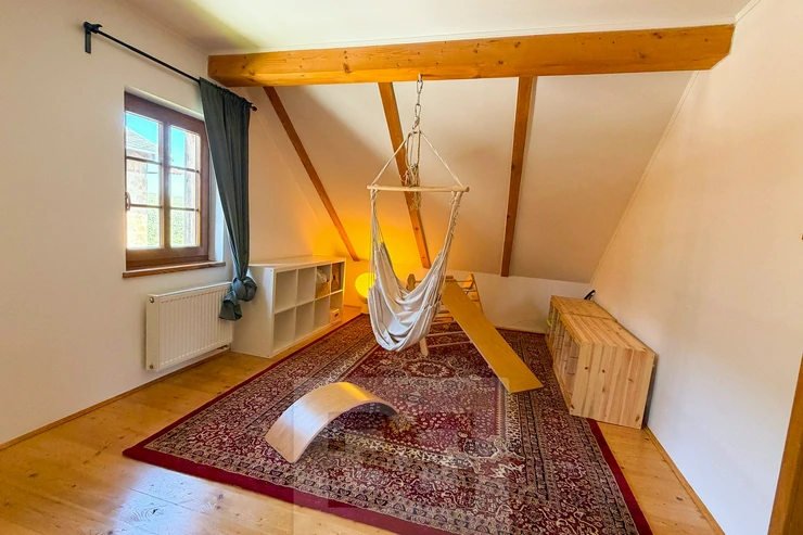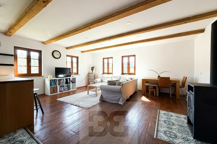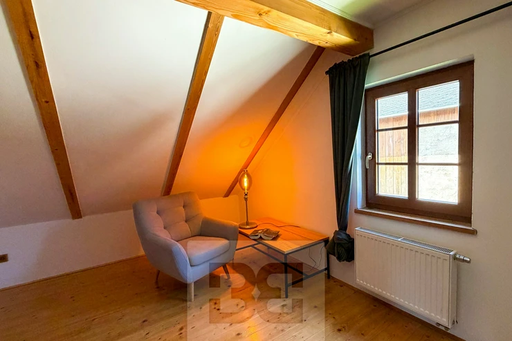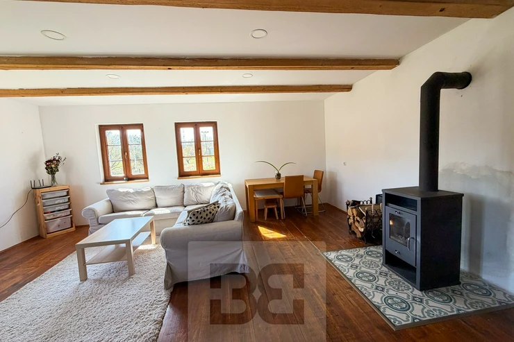 Útulná kamna na tuhá paliva (včetně zásoby na celou zimu v ceně) v hlavní obytné místnosti s přehledem vytopí celý prostor přízemí i prvního patra a dodají prostoru jedinečnou atmosféru. Pokud Vám i přesto bude zima, je možnost komfortního přitápění elektrokotlem.