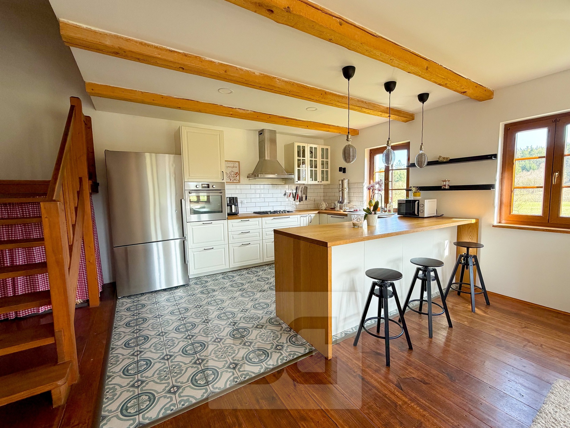 Nabízíme k pronájmu jedinečný dvoupodlažní rodudinný dům o obytné ploše 186 m², zasazenou v naprostém soukromí uprostřed dechberoucí krajiny, a přesto s neuvěřitelnou dostupností – centrum Plzně jen 25 minut jízdy.