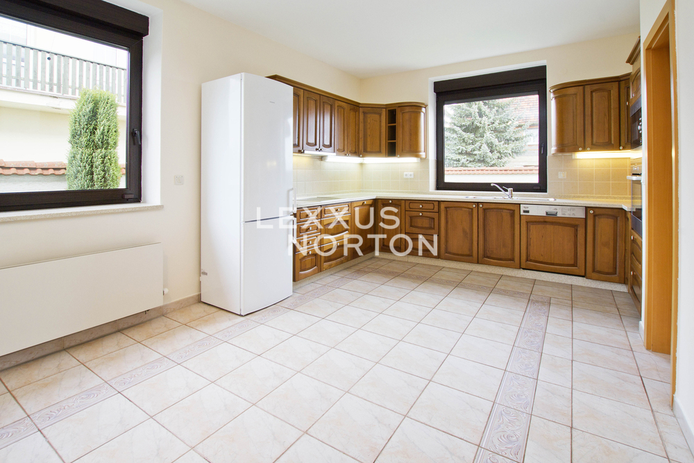 In the attractive village of Horomerice, near international schools, we are offering for rent an unfurnished 6-bedroom family home with a floor area of 240 sqm, featuring a spacious, well-maintained garden (550 sqm) with a garden shed.The ground floor features a spacious living room with access to the terrace, a separate fully equipped kitchen including a dining area and a pantry. Also on this floor are a laundry room, a garage, and a carport for an additional vehicle. The second floor features 5 bedrooms, a study, 2 bathrooms with a bathtub or shower, and a separate toilet.We are offering an unfurnished house featuring a kitchen equipped with a glass-ceramic cooktop, oven, refrigerator, freezer, dishwasher, and microwave. The property is also equipped with a door entry system, an alarm, a fire alarm system, and a washer and dryer.A sought-after residential location with mostly family houses surrounded by the Nature Park Sarka - Lysolaje. Horomerice has good transport accessibility. The Borislavka metro station can be reached by public bus in 11 minutes, the motorway in 7 minutes and the Vaclav Havel Airport in 14 minutes. Within walking distance you will find complete civic amenities - a supermarket, post office, municipal office, pharmacy, general practitioners' offices, cafes and restaurants. Directly in the locality there is a kindergarten, primary and art school and prestigious international schools - International School of Prague, Riverside School, Prague British International School. For leisure activities you can use tennis courts, 2 swimming pools, children's and workout playgrounds or the Nature Park Sarka.The inquiring client agrees to pay a commission of 1 month's rent plus VAT. If you cannot view the property in person, we also offer you a video tour from the comfort of your home in real time via Messenger, WhatsApp and other communication platforms