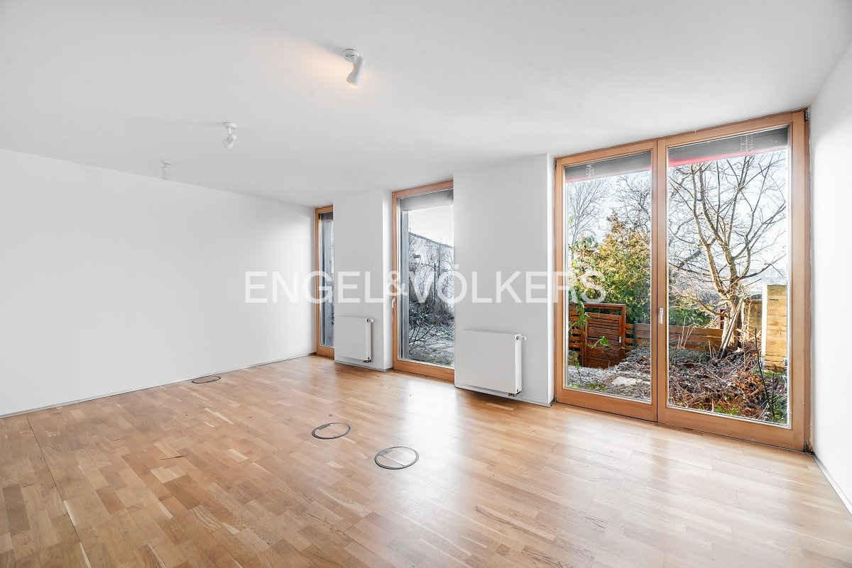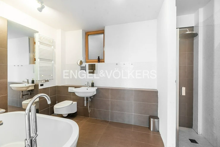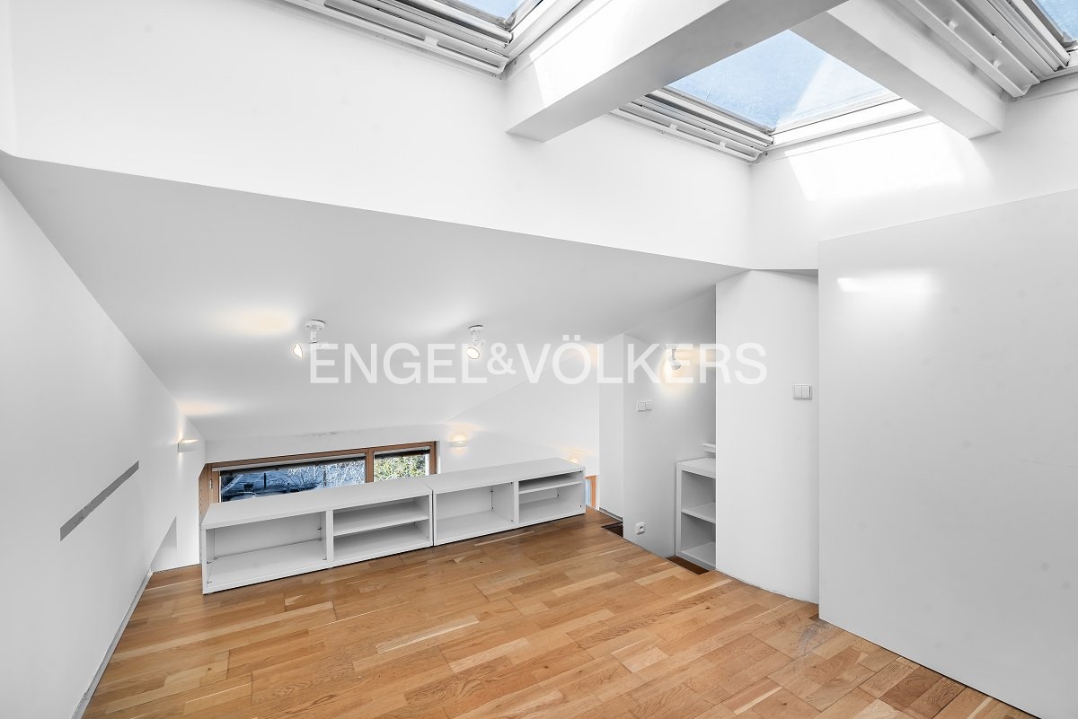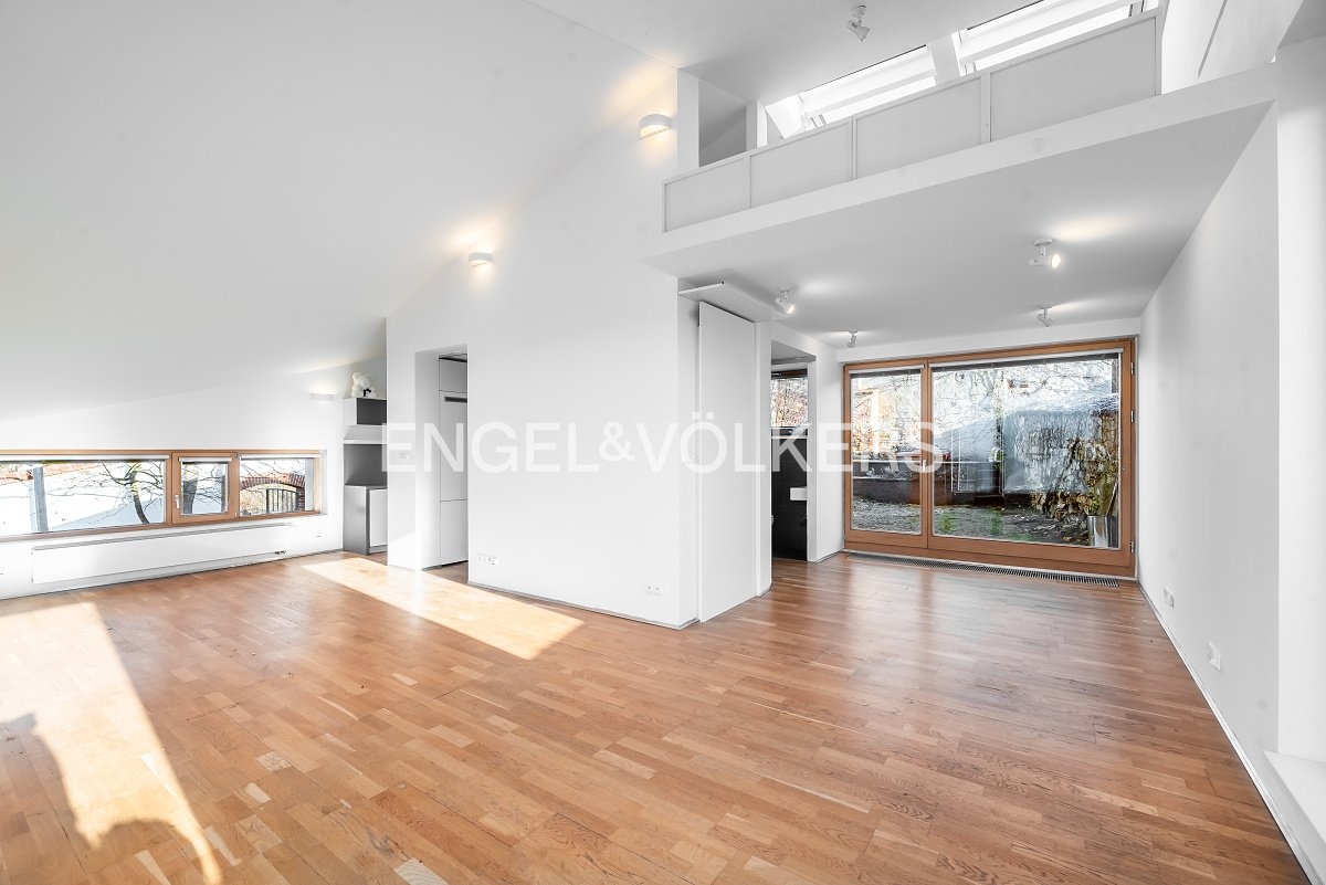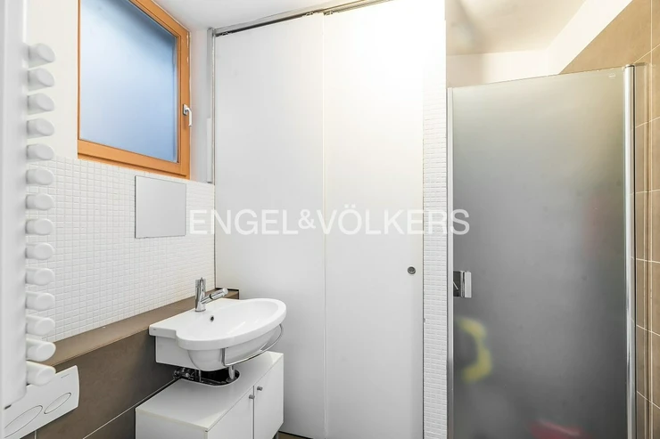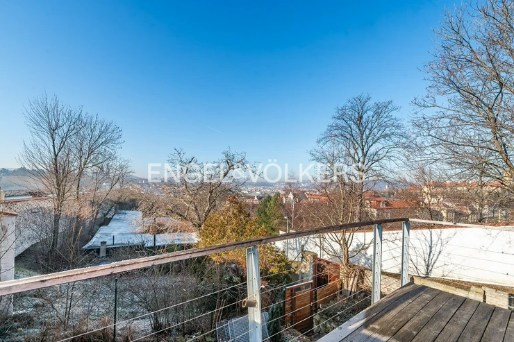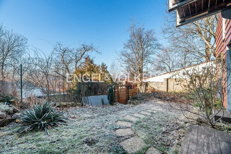 For long-term rent, we offer an unfurnished, spacious family house located in close proximity to Folimanka park with beautiful views of Vyšehrad. The house is situated on a slope and divided into three floors. The main level features an open space with an abundance of large windows and a balcony, a fully equipped kitchen area, a living area, and a toilet. The upper floor hosts an open gallery with a skylight, a bathroom with a shower, and a toilet. The lower floor contains two bedrooms with en-suite bathrooms and a dressing room. If interested, the main bedroom can be divided into two smaller bedrooms, and an additional bathroom can be constructed from the dressing room. The house also features two gardens, a terrace, and air conditioning. Service charges are 2 300 CZK, and electricity and gas are transferred to the tenant. The real estate agency commission is one month's rent plus VAT.