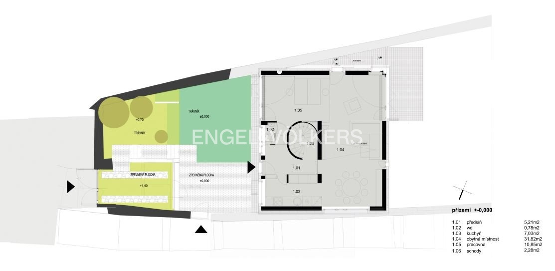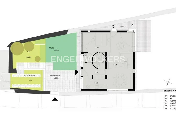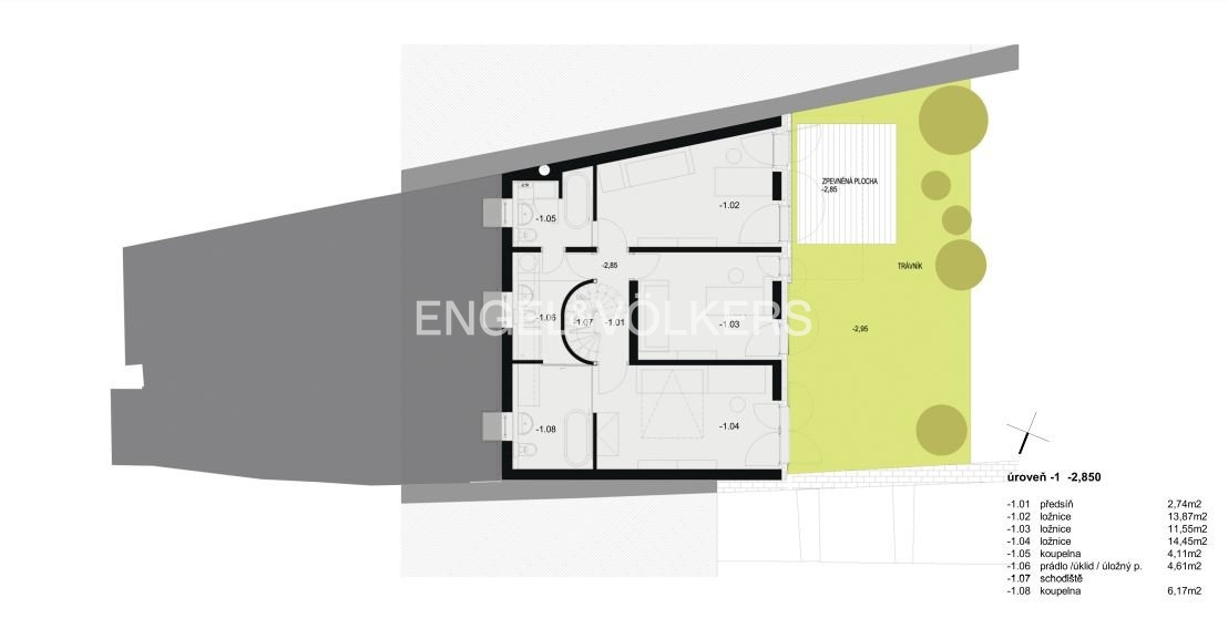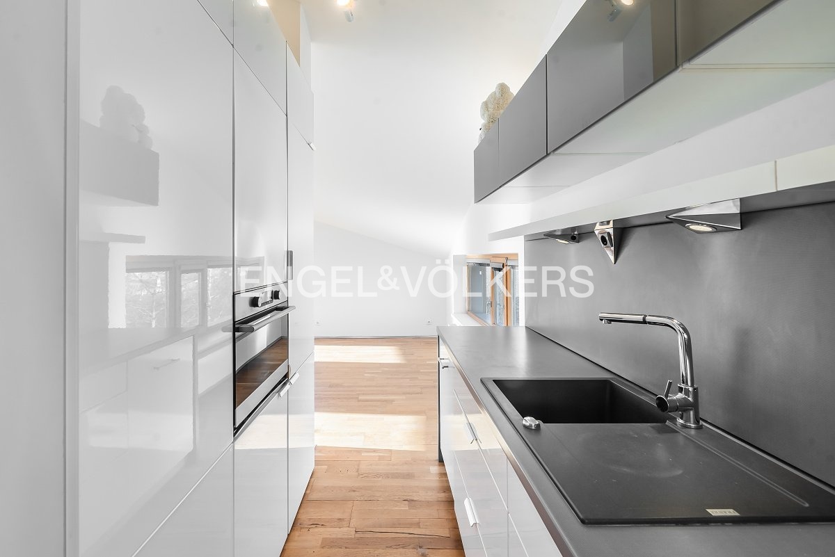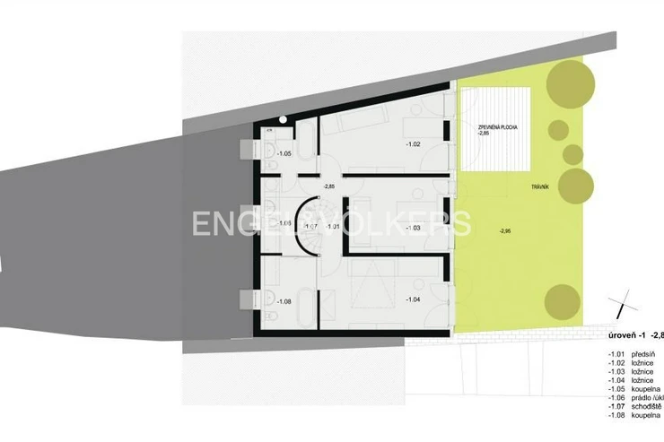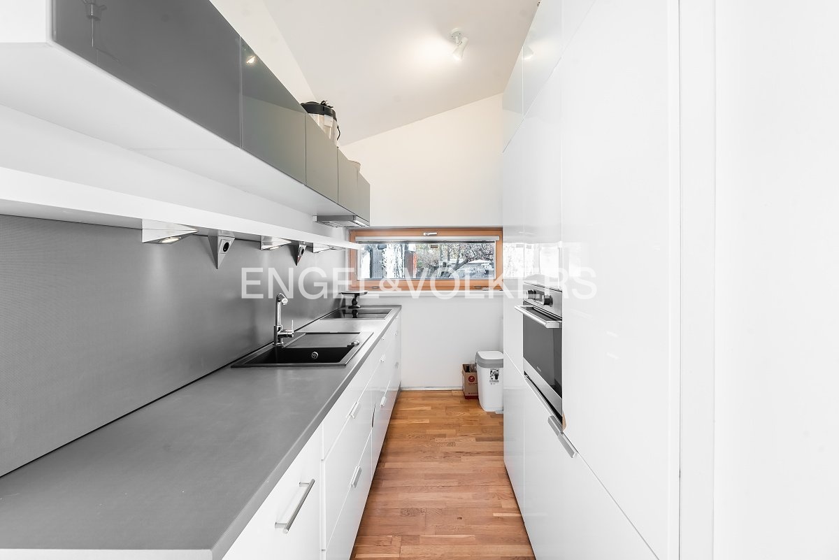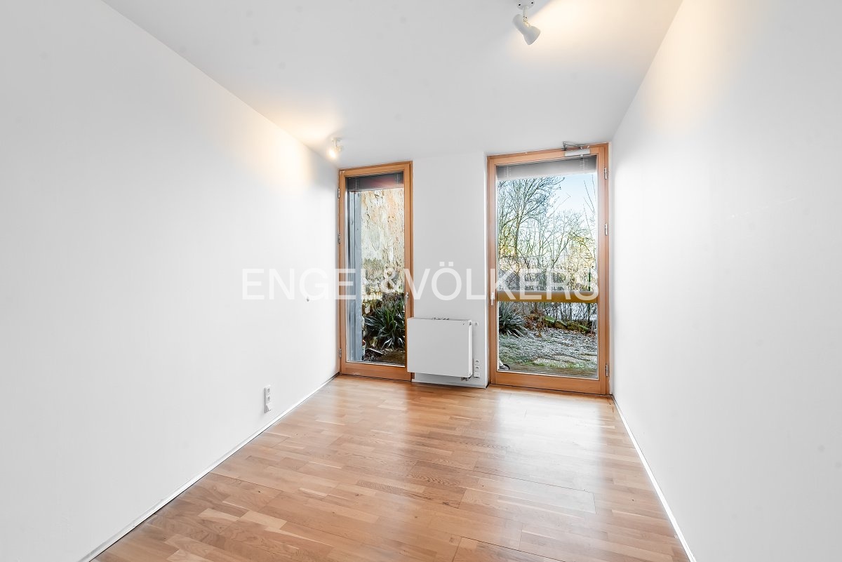 For long-term rent, we offer an unfurnished, spacious family house located in close proximity to Folimanka park with beautiful views of Vyšehrad. The house is situated on a slope and divided into three floors. The main level features an open space with an abundance of large windows and a balcony, a fully equipped kitchen area, a living area, and a toilet. The upper floor hosts an open gallery with a skylight, a bathroom with a shower, and a toilet. The lower floor contains two bedrooms with en-suite bathrooms and a dressing room. If interested, the main bedroom can be divided into two smaller bedrooms, and an additional bathroom can be constructed from the dressing room. The house also features two gardens, a terrace, and air conditioning. Service charges are 2 300 CZK, and electricity and gas are transferred to the tenant. The real estate agency commission is one month's rent plus VAT.