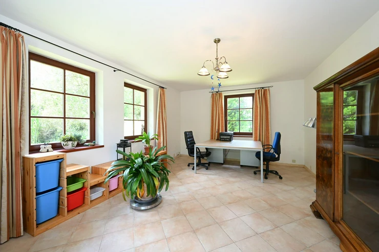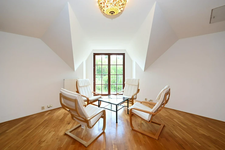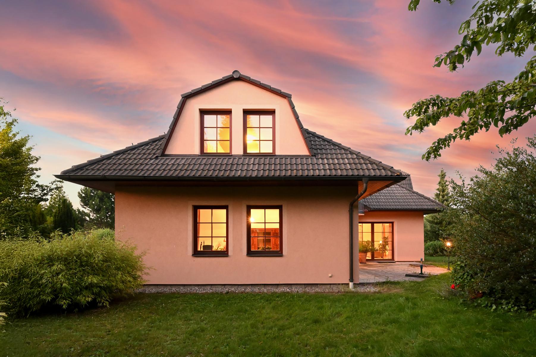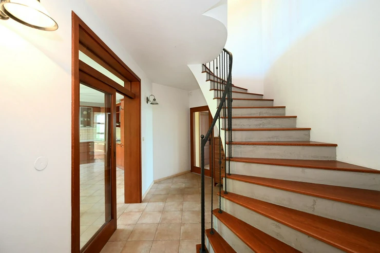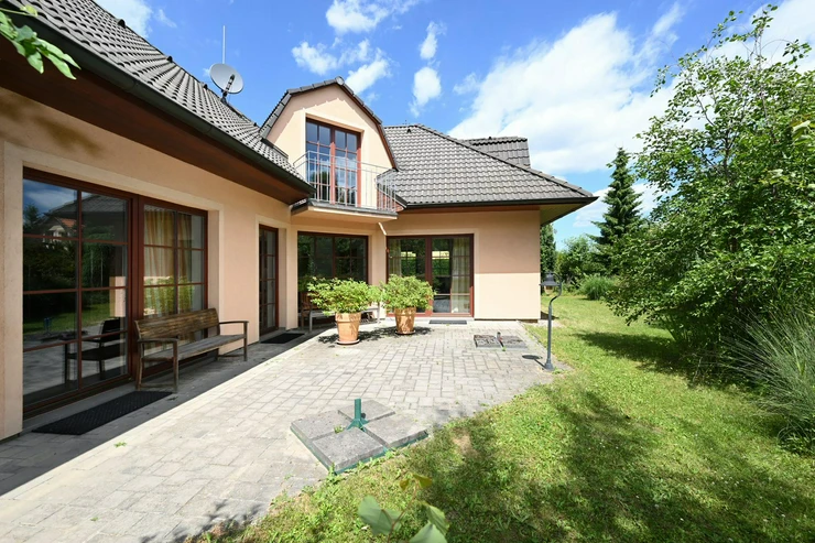 On the plot of 1269 m2 south -oriented family house of 402 m2. Ideal for those looking for light, peace, privacy. Idyllic outdoor seating with your own pond. On the ground floor of the house tiles with underfloor heating. Central vacuum cleaner throughout the house, feeling of freedom and space.