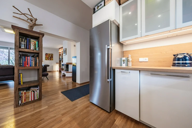 Offer for a long-term rent of a spacious, bright, and detached family house 5 bedroom (6+kk) layout with an open-plan kitchen), total area of 277 sqm, situated in a private setting in the popular residential area of Popovičky (Prague-East), just a 12-minute drive from Opatov metro station.