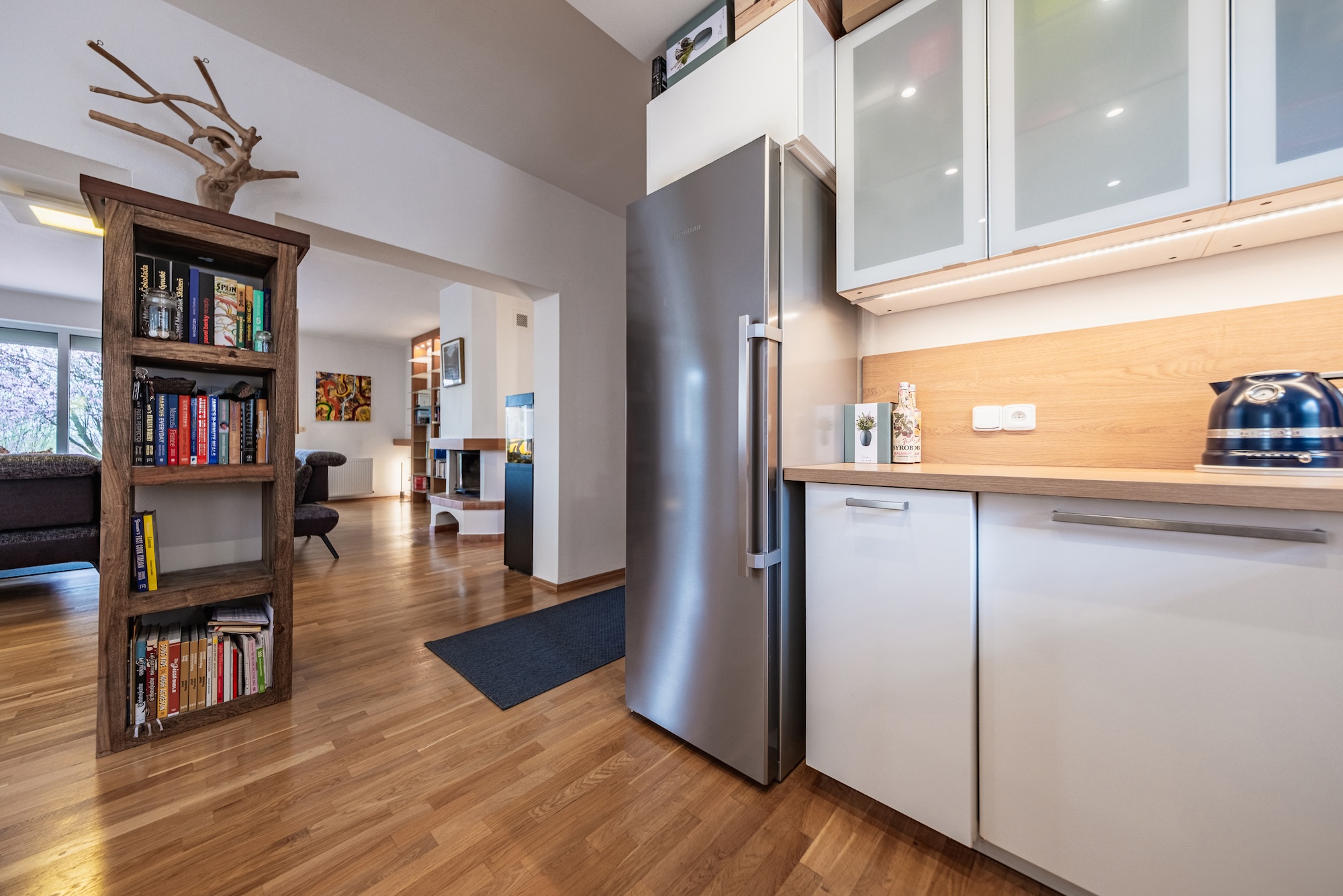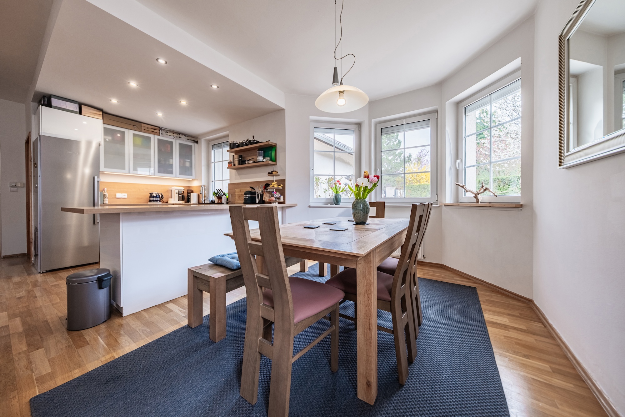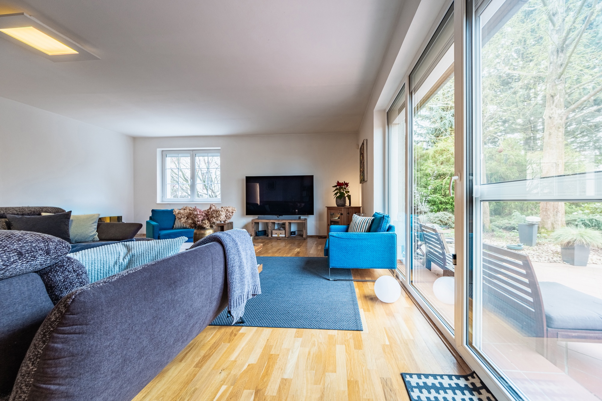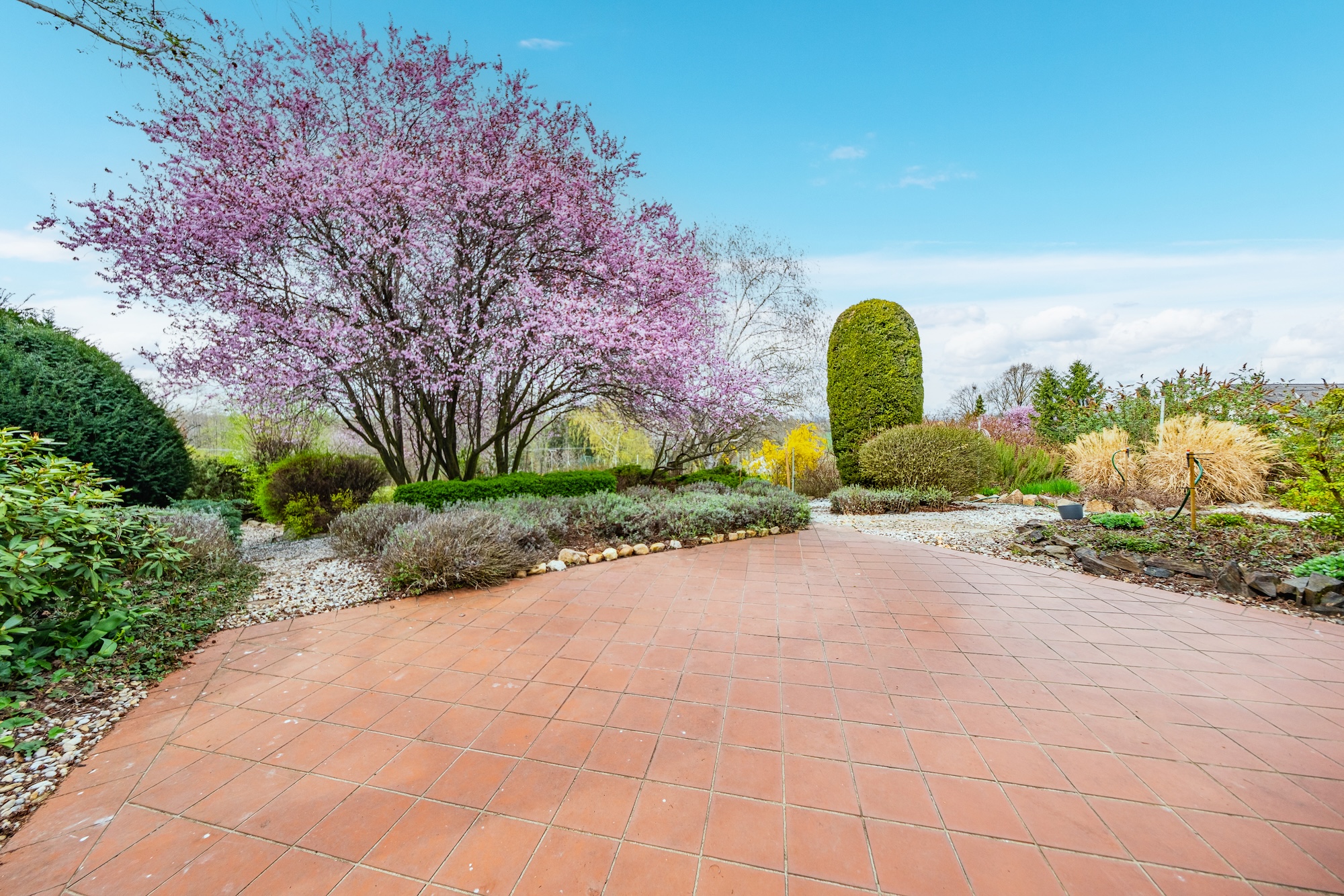 The house is surrounded by a beautifully maintained mature garden of 1,182 sqm, offering plenty of peace, privacy, and space for relaxation. There is also a large terrace with direct access from the living area and a pleasant green view.