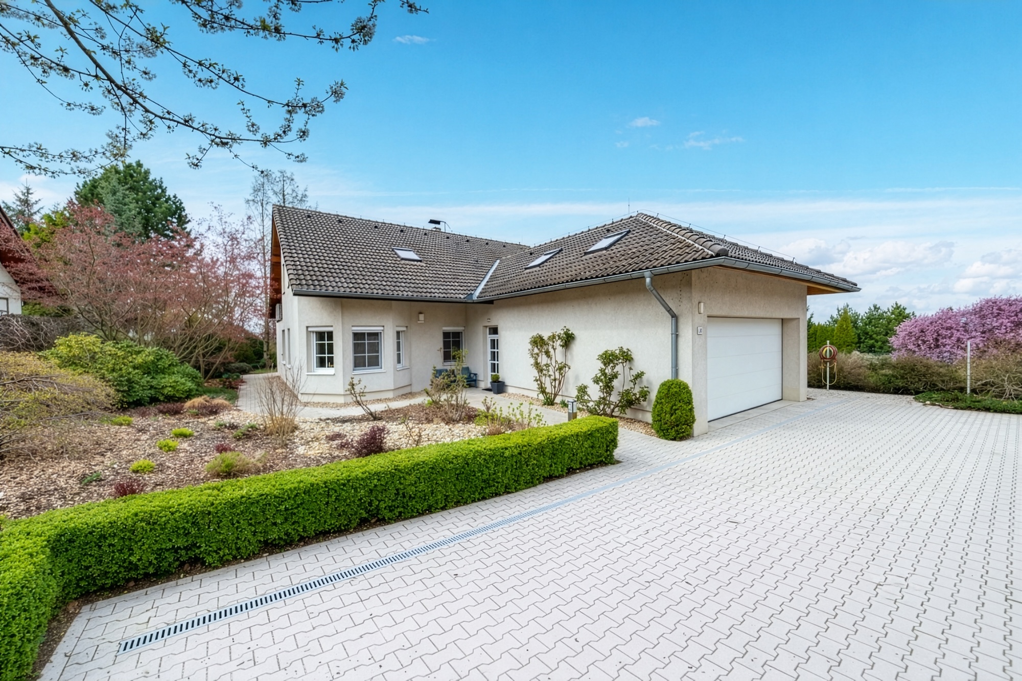 The property includes a double garage and additional parking space for up to 3 cars on the plot.