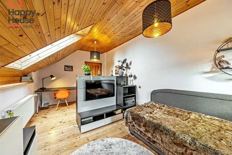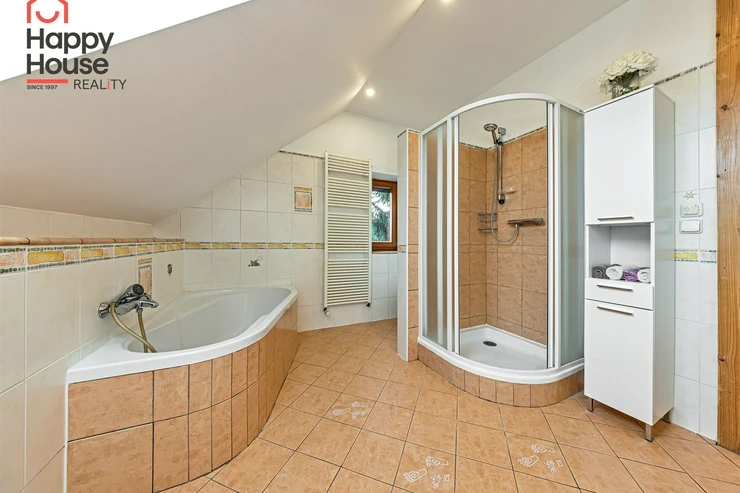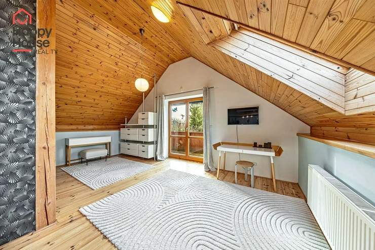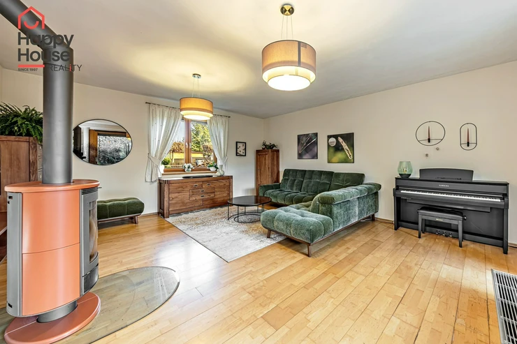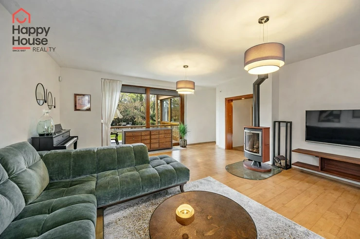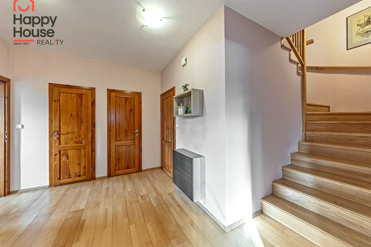 The house is located in a quiet residential area and offers very cozy comfortable living for demanding clients next to the forest about 20 km from the center of Prague. The village has several kindergartens, a private school, a shop, a restaurant, a local office, and a sports hall. All other amenities are available within 3 km in Jesenice.
