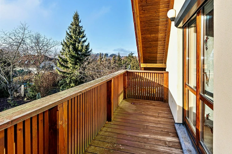 We are offering you an exclusive rental of a detached, fully furnished three-bedroom family house (162 sqm living area) with a large garden (750 sqm), a terrace with a pergola (10 sqm), and a garage on the southern outskirts of Prague, Sulice - Hlubočinka near the town of Jesenice, Prague East. This sunny property with a residential attic featuring 3 bedrooms was approved in 2001, with the garden renovation carried out in 2023. The ground floor includes an entrance hall, a living room with a fireplace stove, a kitchen, a cloakroom (3 sqm), a utility room (5 sqm), while the first attic floor has three separate rooms, a balcony, a bathroom, and a separate toilet.